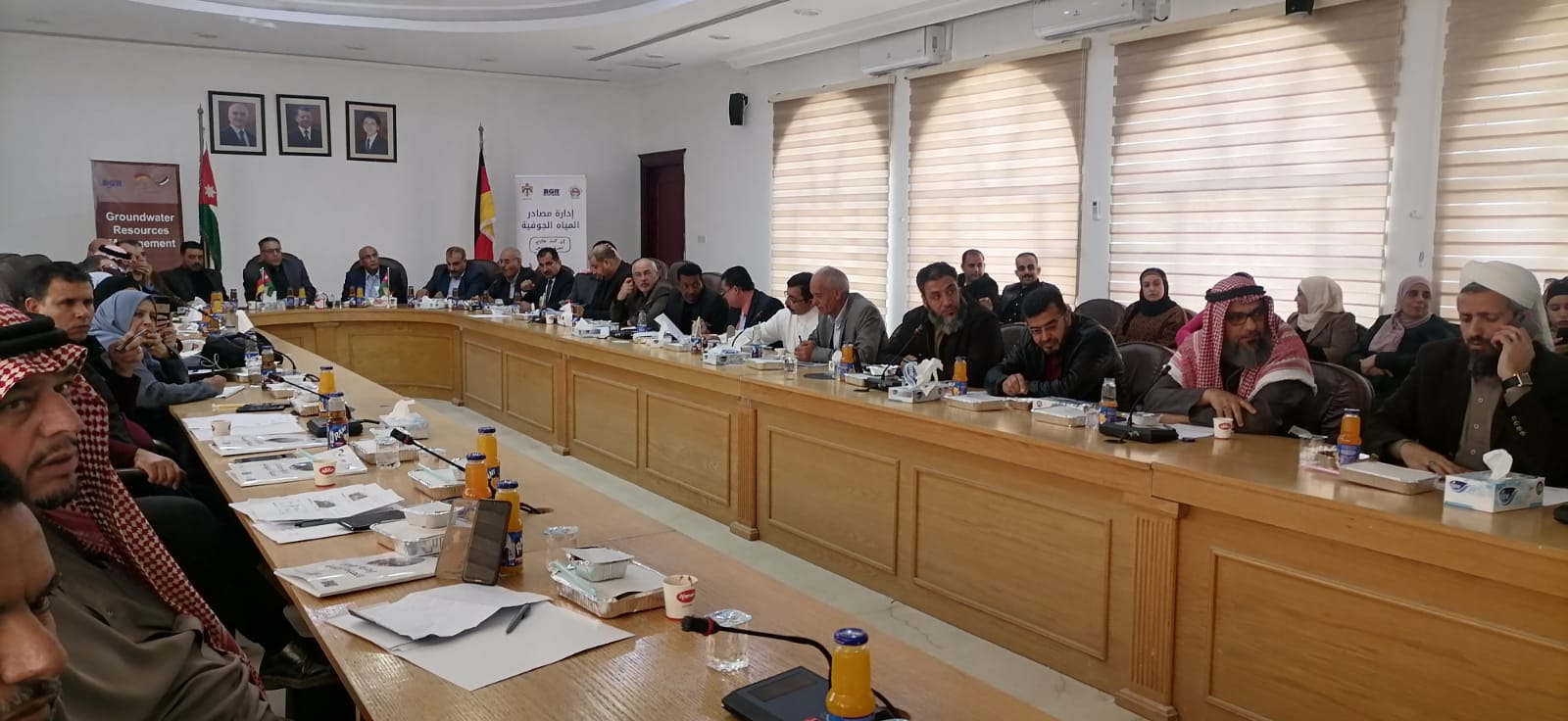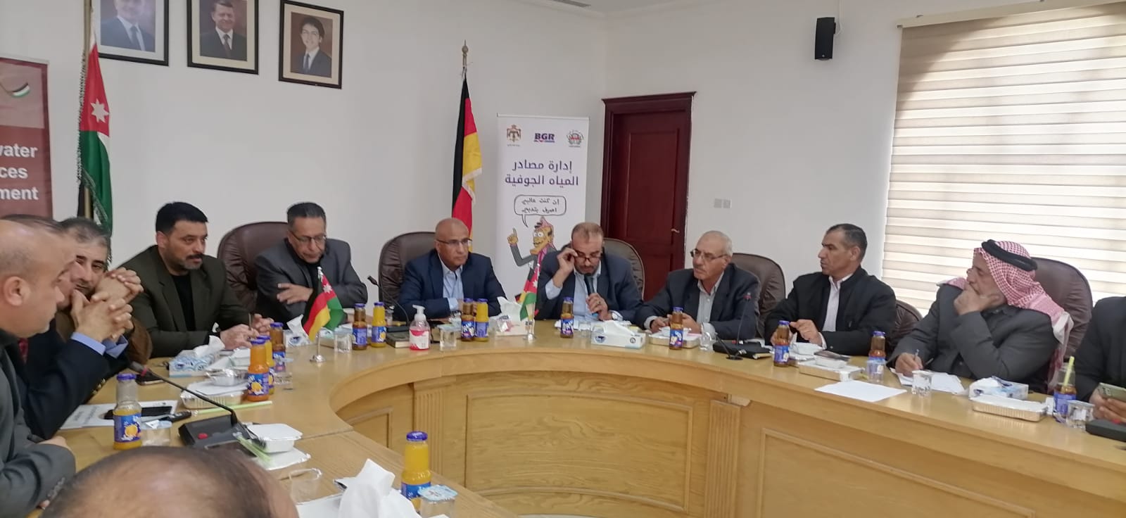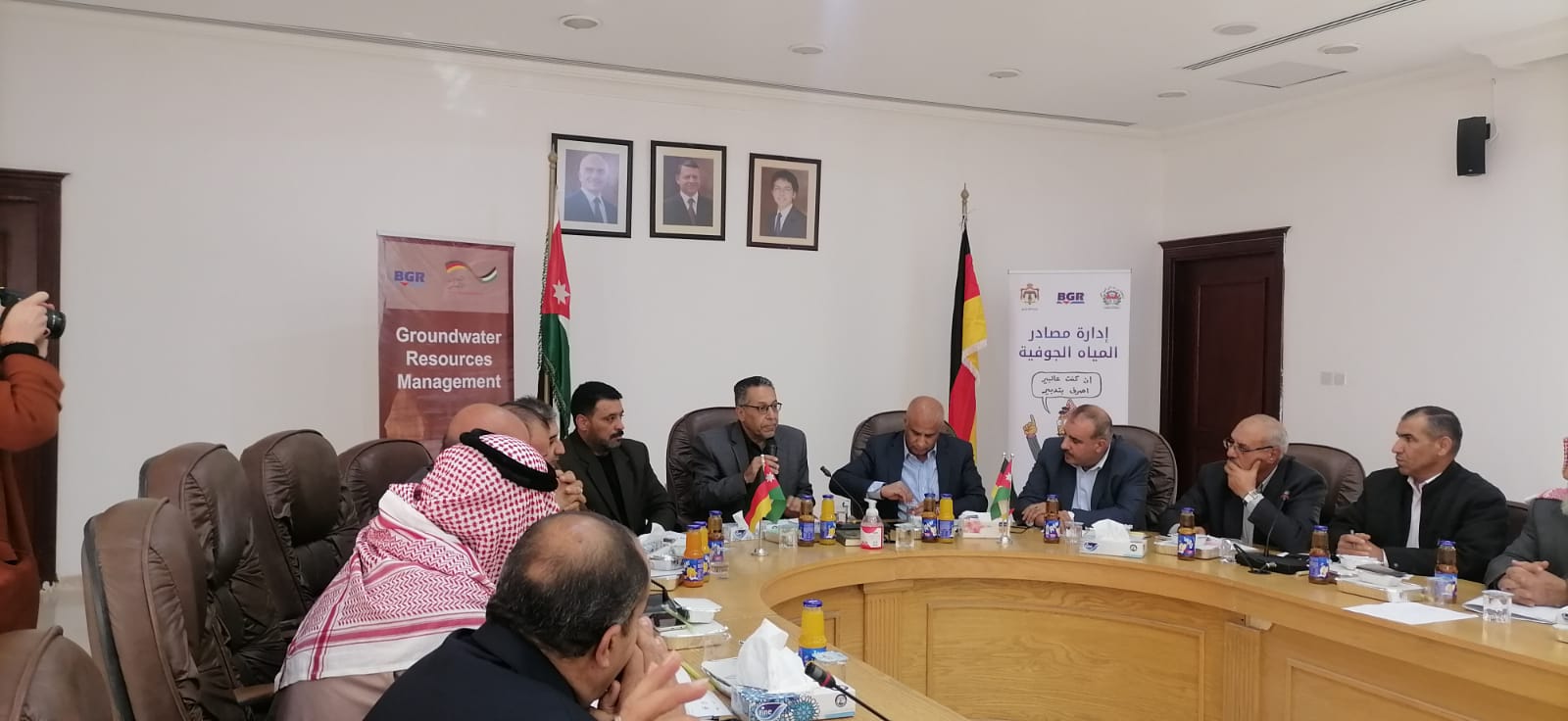 نظمت وزارة المياه والري- سلطة المياه/ادارة شؤون الاعلام والاتصال بحضور امين عام وزارة المياه والري الدكتور جهاد المحاميد ومحافظ الطفيلة د محمد ابو جاموس ورئيس مجلس محافظة الطفيلة فايز السفاسفة ومساعد امين عام وزارة المياه للشؤون الفنية م. عادل عبيات ومساعد الامين العام لشوون الاعلام الناطق الرسمي باسم الوزارة عمر سلامة ومديرة مشروع إدارة مصادر المياه الجوفية ال (BGR) ربيكا بهلز ومدير ادارة عقد مياه الطفيلة المهندس إبراهيم الهودي ورؤساء البلديات ومدراء الدوائر الرسمية والحكام الإداريين وعدد من المعنيين بقطاع المياه من القطاعين العام والخاص وسيدات المجتمع المحلي ضمن الحملة التوعوية لحماية مصادر المياه الجوفية ( إن كنت عالبير، اصرف بتدبير) في دار محافظة الطفيلة اليوم الاثنين 5/12/2022 ضمن برنامج التعاون الفني لمشروع ادارة مصادر المياه الجوفية في الاردن بين وزارة المياه والري والمعهد الفيدرالي الالماني لعلوم الارض والمصادر الطبيعية ال BGR والممول من قبل الوزارة الألمانية للتعاون الاقتصادي والتنميةBMZ والتعاون الالماني GIZ ، لتعزيز ثقافة الحصاد المائي والمحافظة على المياه ورفع الوعي بواقع المياه الجوفية وحمايتها من التلوث والاعتداءات .