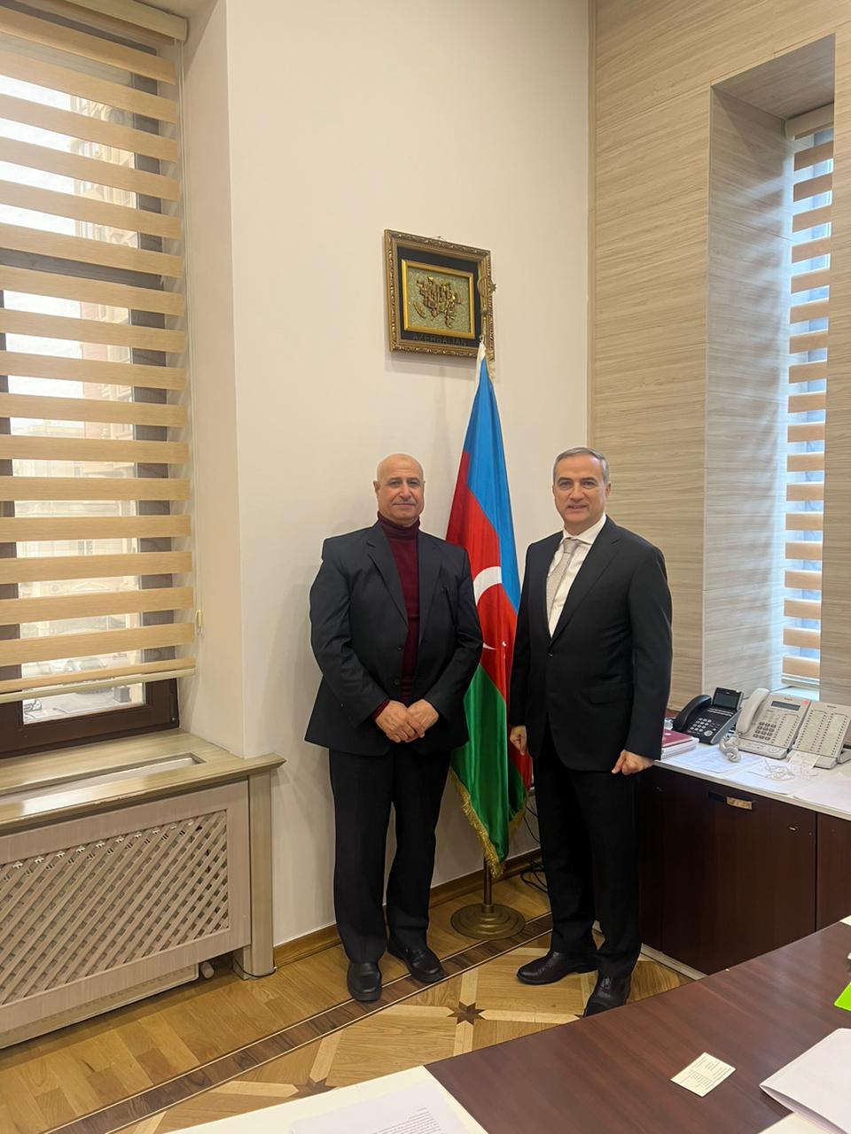 باكو / التقى رئيس مجلس إدارة مركز تحليل العلاقات الدولية في أذربيجان الدكتور فريد شفييف في مكتبه بالمركز في العاصمة باكو اليوم (الأربعاء) رئيس وِحدِة ثقافة السلام في الشرق الأوسط التابعة لمؤسسة العالم في أميركا المستشار وسفير السلام محمد الملكاوي بحضور المستشار القيادي في المركز السيد شاهمار حاجييف.
