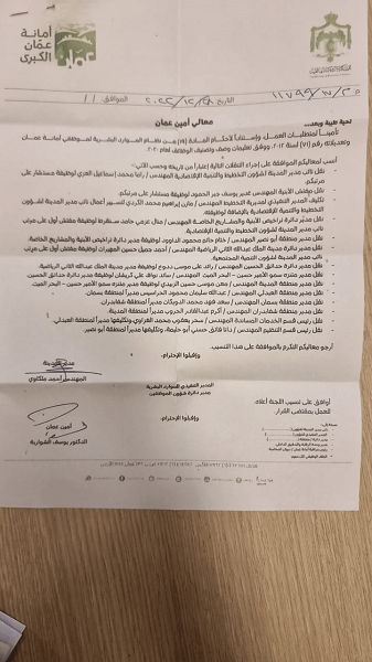 عاجل.. تنقلات في أمانة عمان (أسماء)