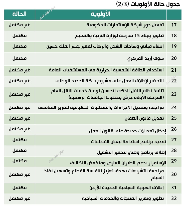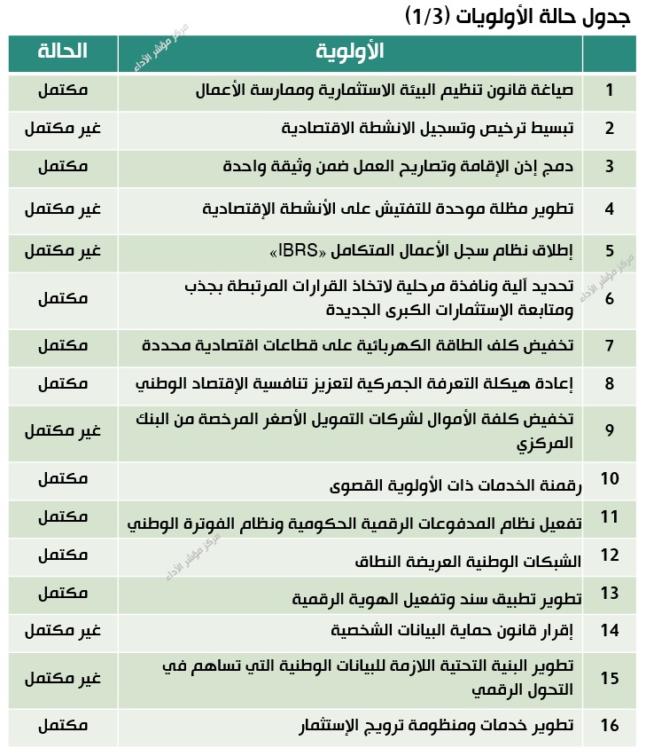عاجل / مركز مؤشر الأداء: برنامج أولويات عمل الحكومة بالمستوى الحرج و 58% معدل الإنجاز