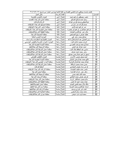 ترفيع 211 موظفاً من أعوان القضاء الشرعي - أسماء