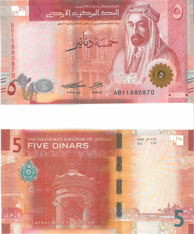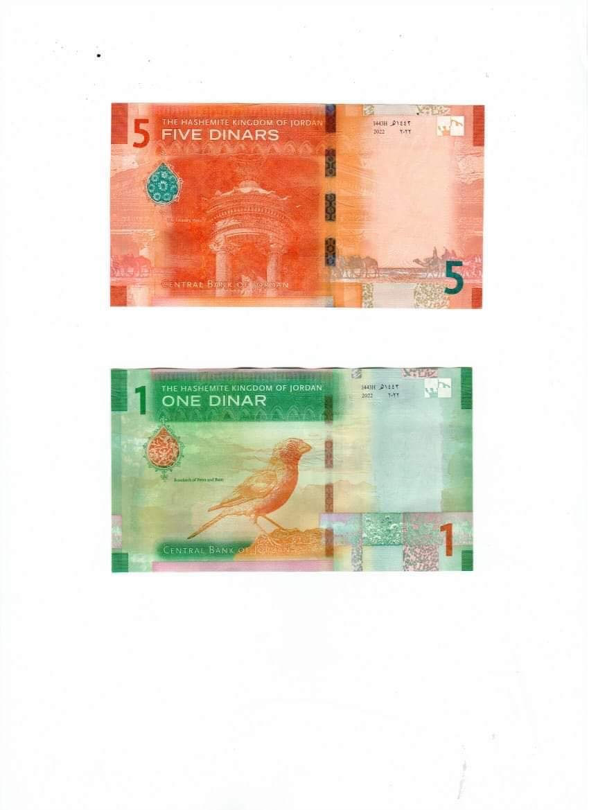فئات الأوراق النقدية/الإصدار الخامس وفقاً لنظام اصدار النقد الأردني رقم (55) لسنة 2022 الصادر في الجريدة الرسمية بتاريخ 2/10/2022: