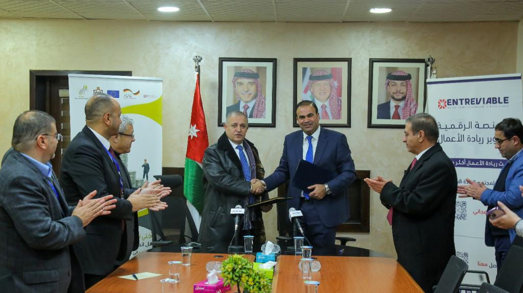 ووقع الاتفاقية مدير عام الصندوق منصور عودة الوريكات والرئيس التنفيذي لشركة المنصة الرقمية لتطوير ريادة الأعمال الدكتور معن القطامين.