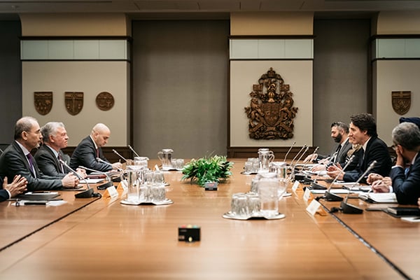 جلالة الملك ورئيس الوزراء ترودو أعادا التأكيد على التزامهما المشترك بالبناء على العلاقات بين الأردن وكندا في مختلف المجالات.