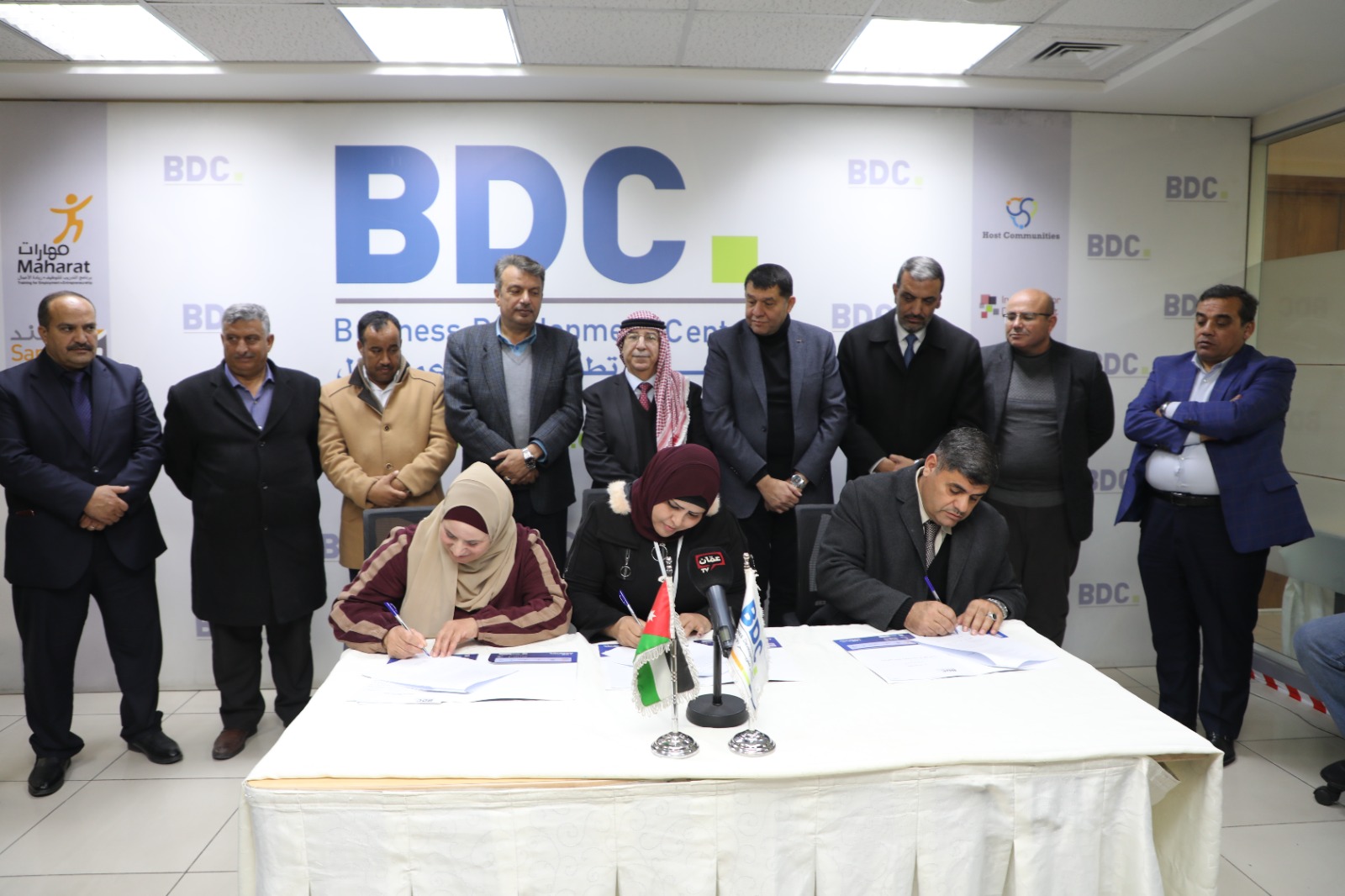 وقع مشروع "عزم" الدعم الاقتصادي للتشغيل الذاتي أحد برامج مركز تطوير الأعمالBDC- و المدعوم من منظمة الأمم المتحدة للطفولة اليونيسيف- unicef بحضور عدد من النواب ورؤساء البلديات والشركاء اتفاقيات مع 18 مستفيد من الجمعيات والشباب الباحثين عن العمل من أبناء البادية الشمالية والجنوبية للبدء بمشاريع اقتصادية مستدامة توفر لهم فرص العمل.