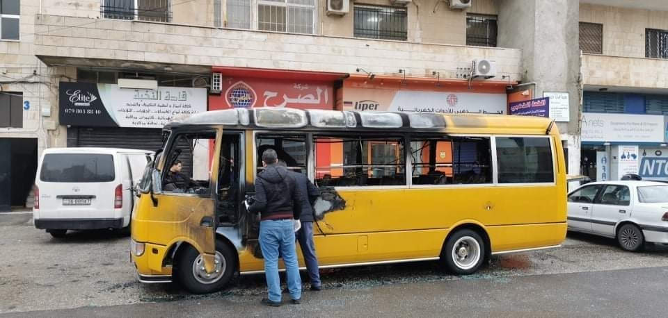 اندلعت النيران بحافلة مدرسية كانت متوقفة صباح اليوم الأحد في منطقة خلدا - أم السماق بالعاصمة عمان.
