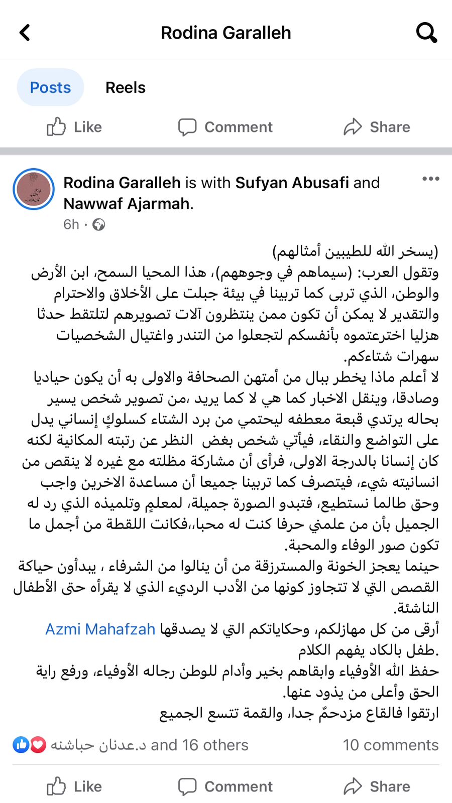 لا أعلم ماذا يخطر ببال من أمتهن الصحافة والاولى به أن يكون حياديا وصادقا، وينقل الاخبار كما هي لا كما يريد ،من تصوير شخص يسير بحاله يرتدي قبعة معطفه ليحتمي من برد الشتاء كسلوكٍ إنساني يدل على التواضع والنقاء، فيأتي شخص بغض النظر عن رتبته المكانية لكنه كان إنسانا بالدرجة الاولى، فرأى أن مشاركة مظلته مع غيره لا ينقص من انسانيته شيء، فيتصرف كما تربينا جميعا أن مساعدة الاخرين واجب وحق طالما نستطيع، فتبدو الصورة جميلة، لمعلمٍ وتلميذه الذي رد له الجميل بأن من علمني حرفا كنت له محبا،،فكانت اللقطة من أجمل ما تكون صور الوفاء والمحبة.