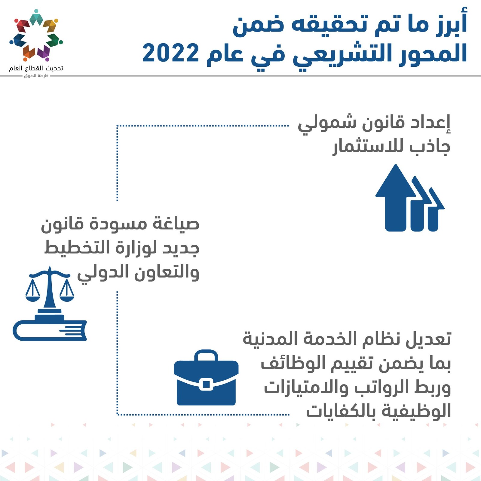 من؛ محور الخدمات، والمحور المؤسسي، والمحور التشريعي.