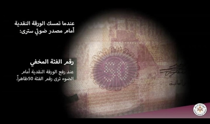 ويتضمن الإصدار الجديد علامات أمنية للتحقق من أن الورقة النقدية حقيقية أم لا، منها مائية ومخفية، وفق أحدث العلامات الأمنية المستخدمة في عالم صناعة النقد.