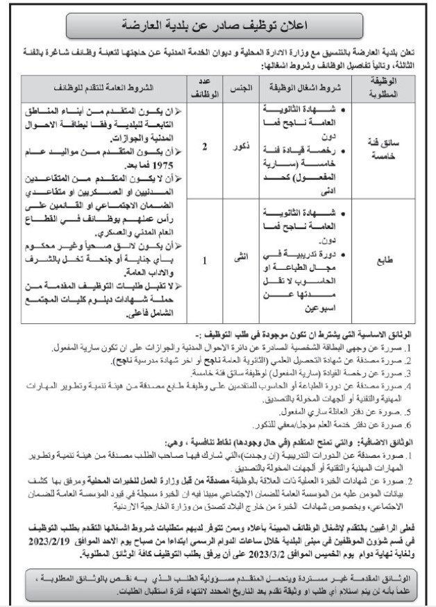 كما أعلن عن وظائف شاغرة بالتنسيق مع الوزارات والمؤسسات .