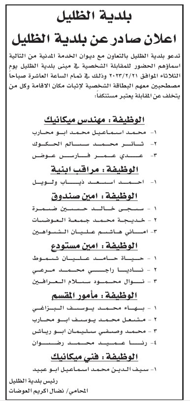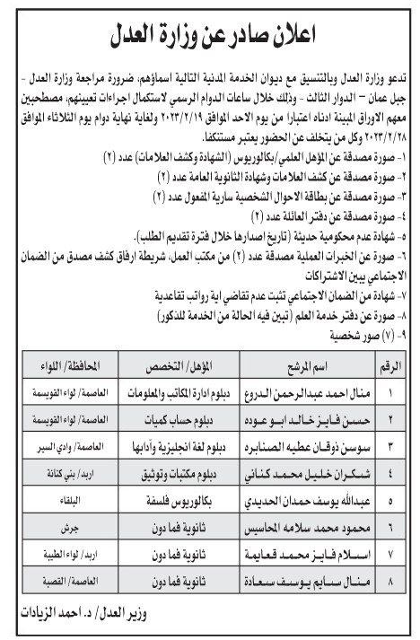 وظائف حكومية شاغرة ومدعوون للمقابلات الشخصية-أسماء