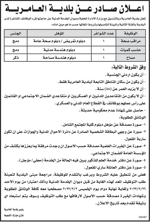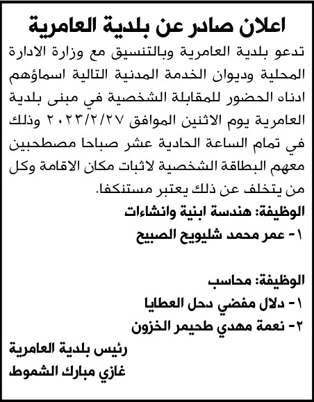 وظائف حكومية شاغرة ومدعوون للمقابلات الشخصية-أسماء