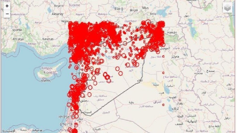 بالصورة | خارطة لتوزع آلاف الهزات الارتدادية في سوريا بمختلف الدرجات في أقل من شهر