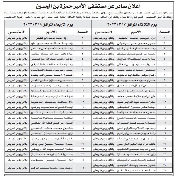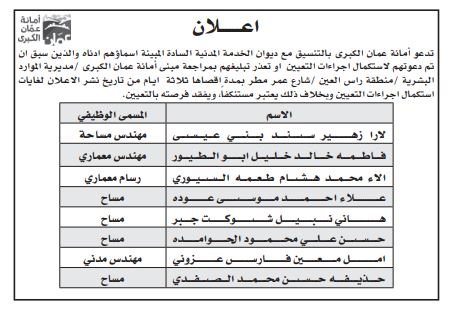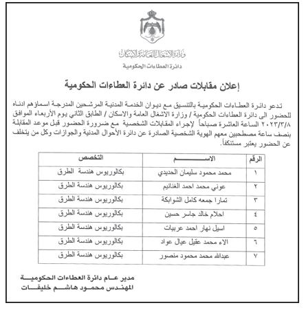 دعت عدد من المؤسسات الرسمية والبلديات بالتنسيق مع ديوان الخدمة المدنية اليوم الإثنين ، عدد من المرشحين لإجراء المقابلات الشخصية واستكمال إجراءات التعيين.