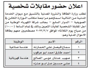 مدعوون لمقابلات شخصية في مؤسسات رسمية وبلديات (أسماء)