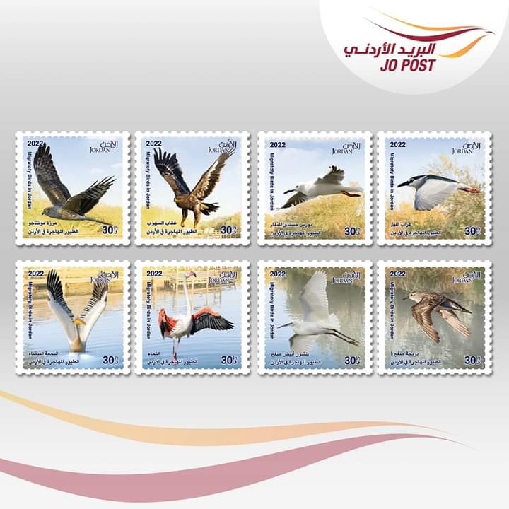 الطيور المهاجرة في الأردن ومناسبة الإصدار هي أن الاردن يعتبر محطة للطيور المهاجرة بسبب موقعه الاستراتيجي، حيث تظهر الطوابع التنوع الحيوي الذي يمتاز به الأردن من حيث الطيور التي تعبره خلال أوقات السنة المختلفة. ويتكون الاصدار من ميني شيت ، يحتوي على ثمانية طوابع وقيمة كل طابع (30) ثلاثون قرشا والقيمة الاجمالية للإصدار (2.40) ديناران واربعون قرشا، بالإضافة إلى مغلف اليوم الأول للإصدار بقيمة (2.90) ديناران وتسعون قرشا مع مجموعة الطوابع الملصقة على المغلفات.
