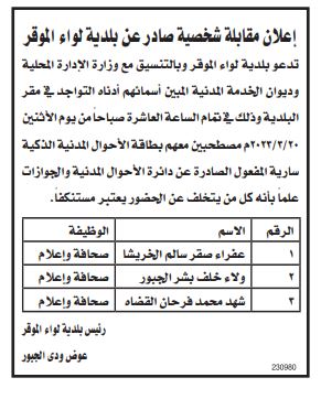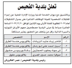 بالأسماء .. مدعوون لإجراء مقابلات شخصية