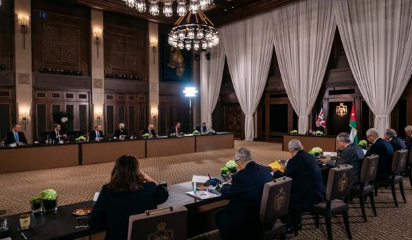 وحضر اللقاء رئيس الديوان الملكي الهاشمي يوسف حسن العيسوي، ومدير مكتب جلالة الملك، الدكتور جعفر حسان.
