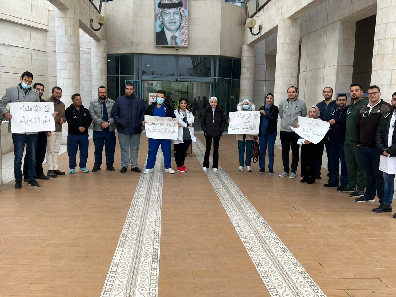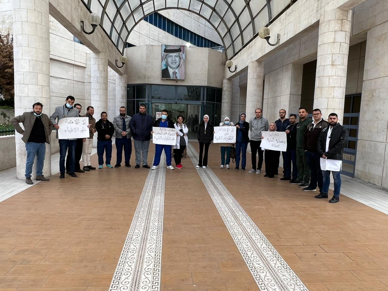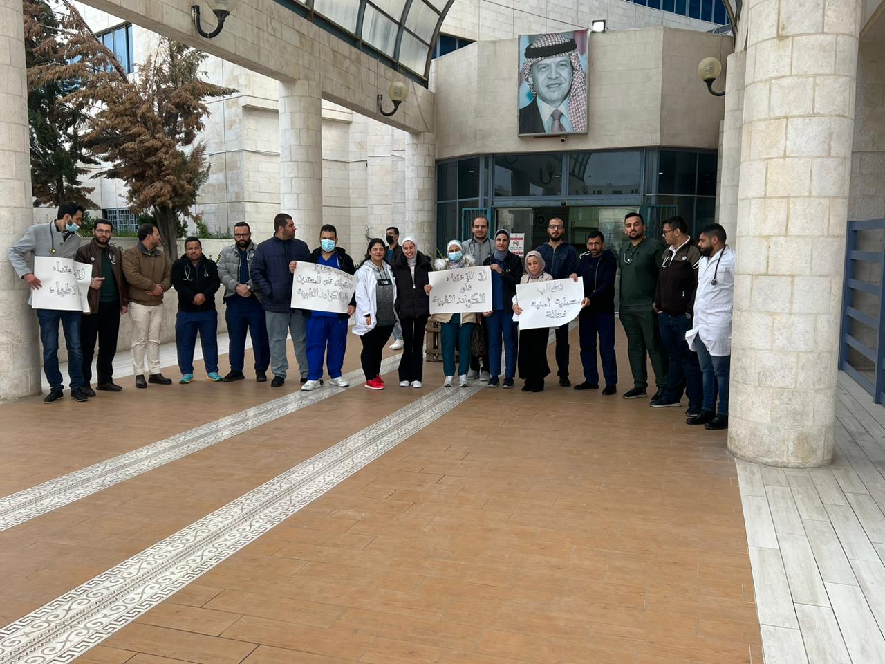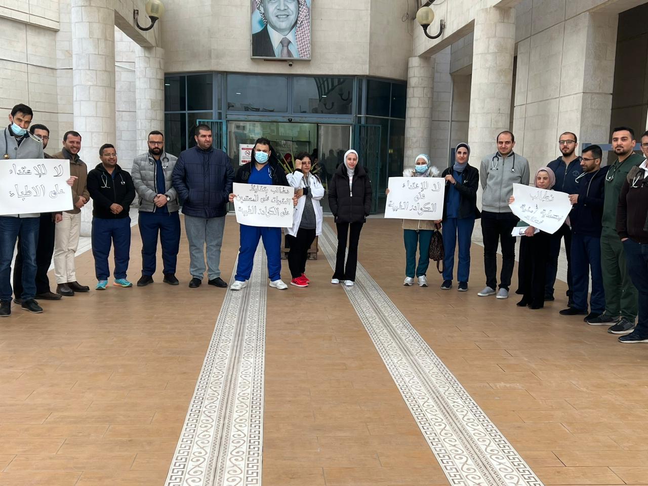 نفذت الكوادر الطبية العاملة في مستشفى الامير حمزة من أطباء وممرضين وصيادلة وفنيين صباح اليوم الخميس وقفة احتجاجية للمطالبة بوضع حد للاعتداءات المتكررة التي تتعرض لها الكوادر وبشكل مستمر مما تسبب بارباكات دائمة في العمل أثرت سلبا على سلامة المرضى وسمعة المستشفيات الاردنية .