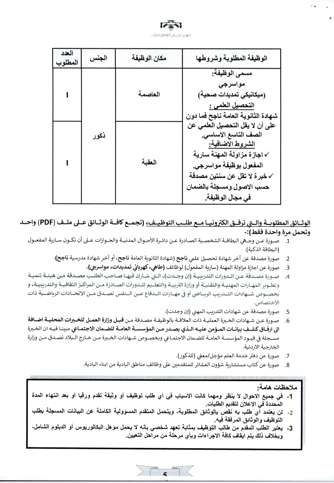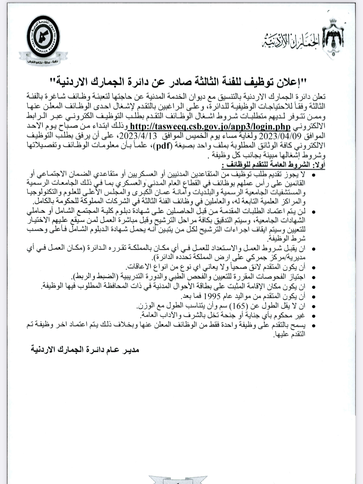 للتقدم بطلبات التوظيف الكترونيا عبر الرابط المرفق اعتبارا من تاريخ 2023/4/9 ولغاية تاريخ 13/4/2023