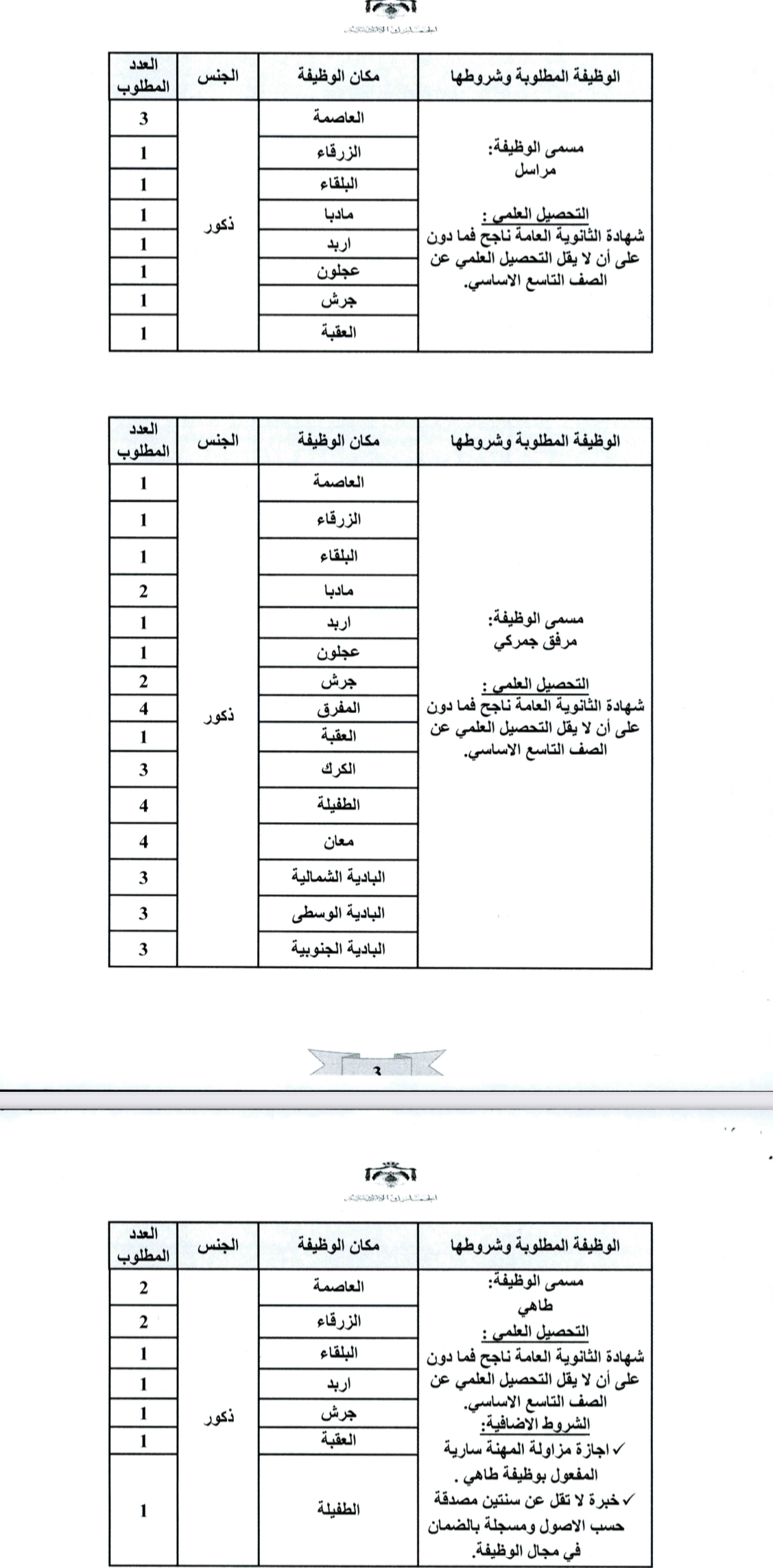 اعلنت دائرة الجمارك الاردنية بالتنسيق مع ديوان الخدمة المدنية عن حاجتها لتعبئة الشواغر التالية (للفئة الثالثة)