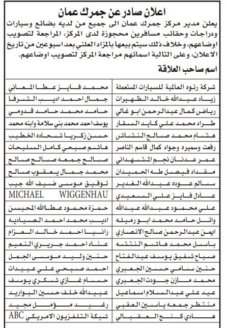 وقال إنه خلاف ذلك سيتم بيعها في المزاد العلني بعد أسبوعين من تاريخه، وعلى التالية أسمائهم مراجعة المركز لتصويب أوضاعهم. الغد