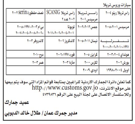 جمرك عمان ينشر أسماء أشخاص لديهم ممتلكات محجوزة