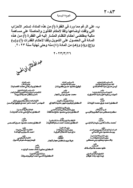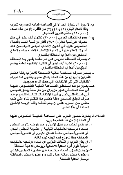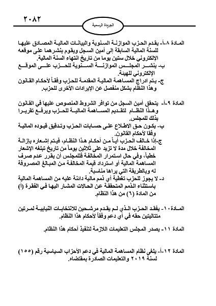 صدرت الإرادة الملكية السامية، بالموافقة على قرار مجلس الوزراء، المتضمن إقرار نظام المساهمة المالية في دعم الأحزاب السياسية .