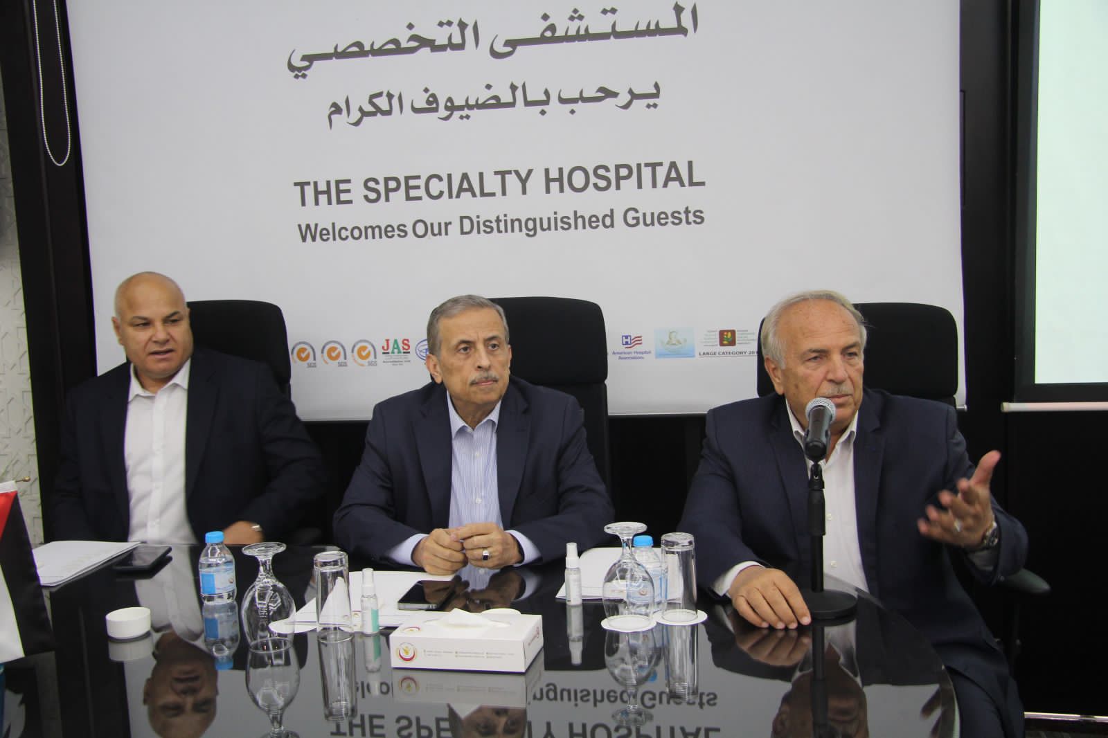 التقى عدد من الأعضاء المؤسسين في حزب تقدّم تحت التأسيس مع نخبة من الفعاليات الاقتصادية والنقابية ومؤسسات المجتمع المدني في المستشفى التخصصي ، حيث استعرض الدكتور فوزي الحموري رؤية الحزب ورسالته و مبادئه وبرامجه وسياساته حيال جميع الملفات السياسية والاقتصادية بما ينسجم مع إنتاج حالة حزبية مؤثرة قادرة على الاستقطاب ذات قواعد راسخة و مستمرة تحكمها البرامجية.