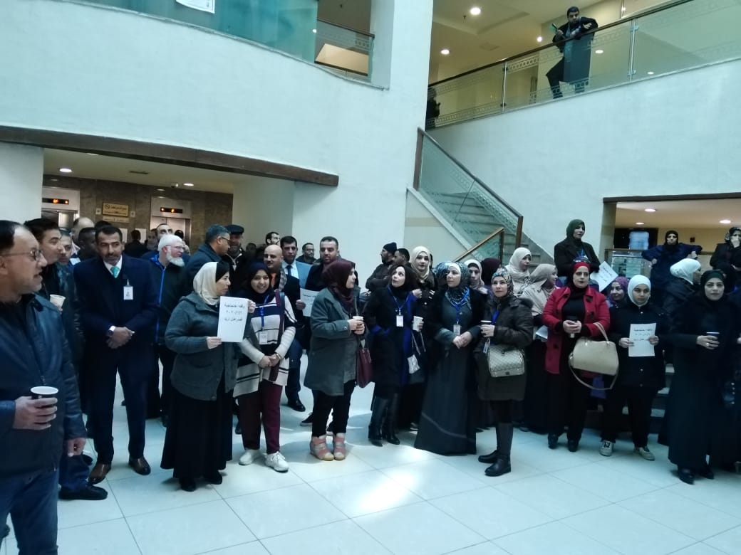 تعلن لجنة المحاكم في حالة توجيه اي عقوبة لاحد الموظفين بسبب الوقفات الاحتجاجيه فلن تتخلى ابدا عن الموظف وتتحمل اللجنة كافة المسؤولية حتى ولو اضطررنا الى جمع الموظفين كلهم امام مقر الوزارة حتى الرجوع عن قرارها التعسفي والمجحف بحق اي موظف يشارك بالاحتجاجات( فاحتجاجاتنا قانونية وسنتوجه لمجلس النواب ونقابة المحاميين والاعلام الرسمي وسنبدا بقناة رؤيا واذاعة اف ام وستكون حاضره قريبا )