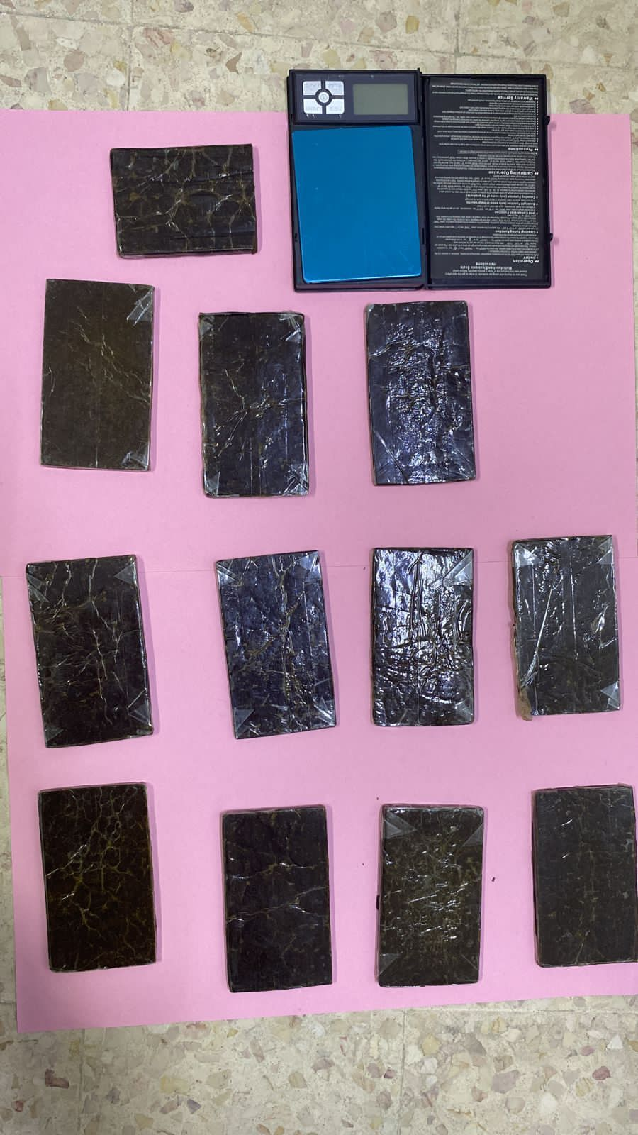 وفي محافظة العاصمة جرت مداهمة مروج للمخدرات وأُلقي القبض عليه وضبط بحوزته 14 كفاً من مادة الحشيش .