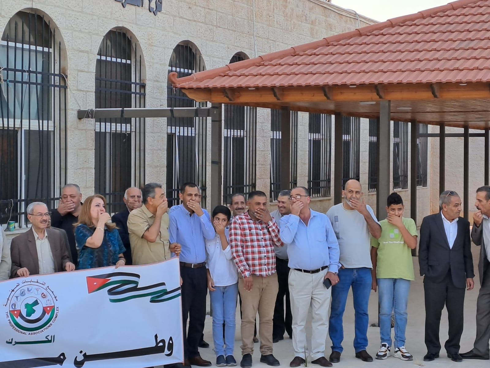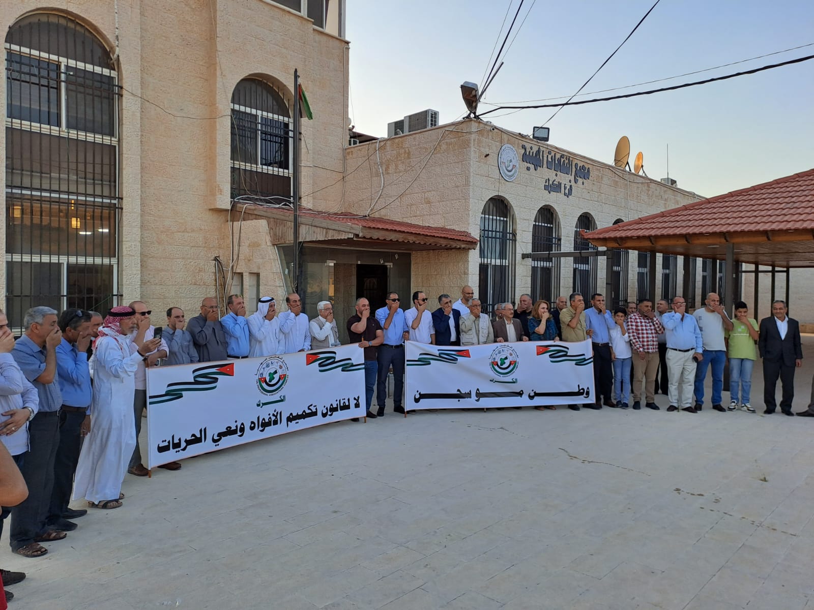 إننا في مجمع النقابات المهنية الكرك ندين ونستنكر هذا العمل والتصرف الغير مسؤول مثلما هو غير مقبول ومرفوض بأي حال من الأحوال فإننا نطالب الحكومة بالتوقف عن سياساتها العرفية في اغتيال حرية التعبير وتكميم الأفواه والتوقف أمام حقيقة ما يجري ومراجعة كل المسارات التي يتغول فيها العقل الأمني للدولة بما يدمّر ما تبقى من ثقة للمواطنين بدولتهم ومؤسساتها.
