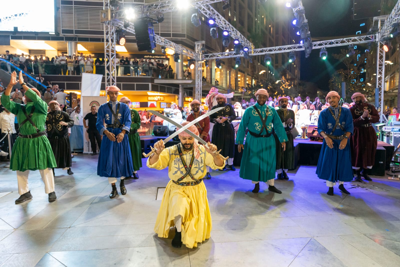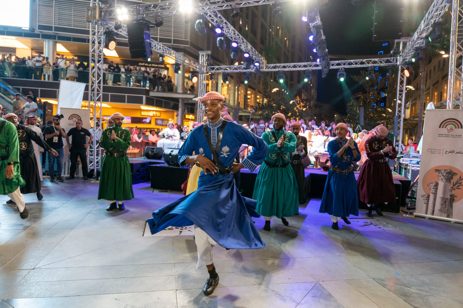 وشاركت فرق أدائية رجالية ونسائية في الحفلة، وقدمت فنون السامري، والخطوة، والخبيتي، والينبعاوي، لتختتم الأمسية بتكريم للمشاركين السعوديين في المهرجان، تسلمه رئيس الوفد السعودي المشارك في مهرجان جرش، الرئيس التنفيذي لهيئة المسرح والفنون الأدائية سلطان البازعي.