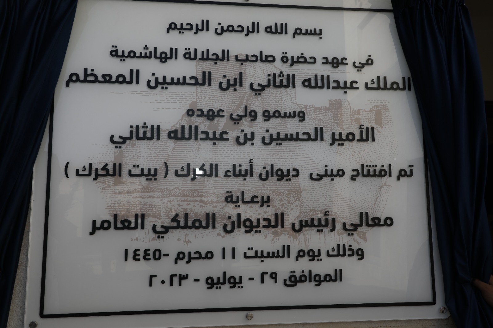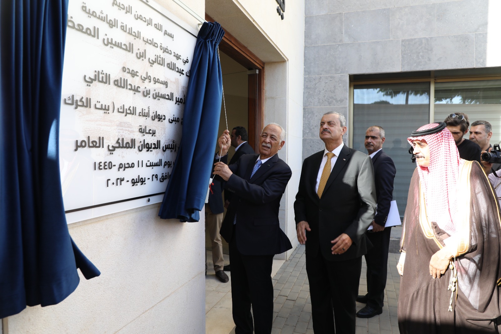 معالي رئيس الديوان الملكي الهاشمي السيد يوسف حسن العيسوي يفتتح اليوم السبت الموافق 29-7-2023 مبنى بيت الكرك في العاصمة عمان وسط حضور كبير وذلك بمناسبة زفاف صاحب السمو الملكي الامير الحسين بن عبد الله الثاني ولي العهد المعظم حفظه الله ورعاه واحتفالات المملكة بالمناسبات والاعياد الوطنية .