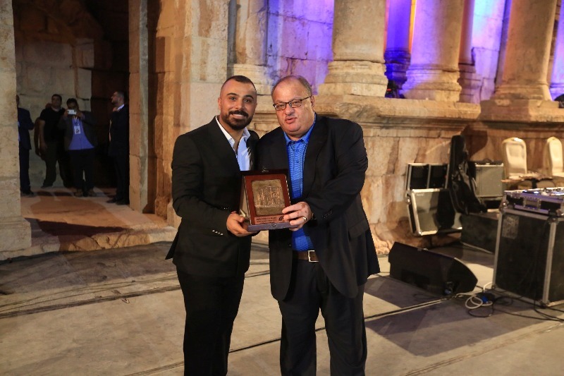 وفي نهاية الحفله كرم مدير مهرجان جرش أيمن سماوي بتكريم الفنان راغب علامة والفنان حسين السلمان .
