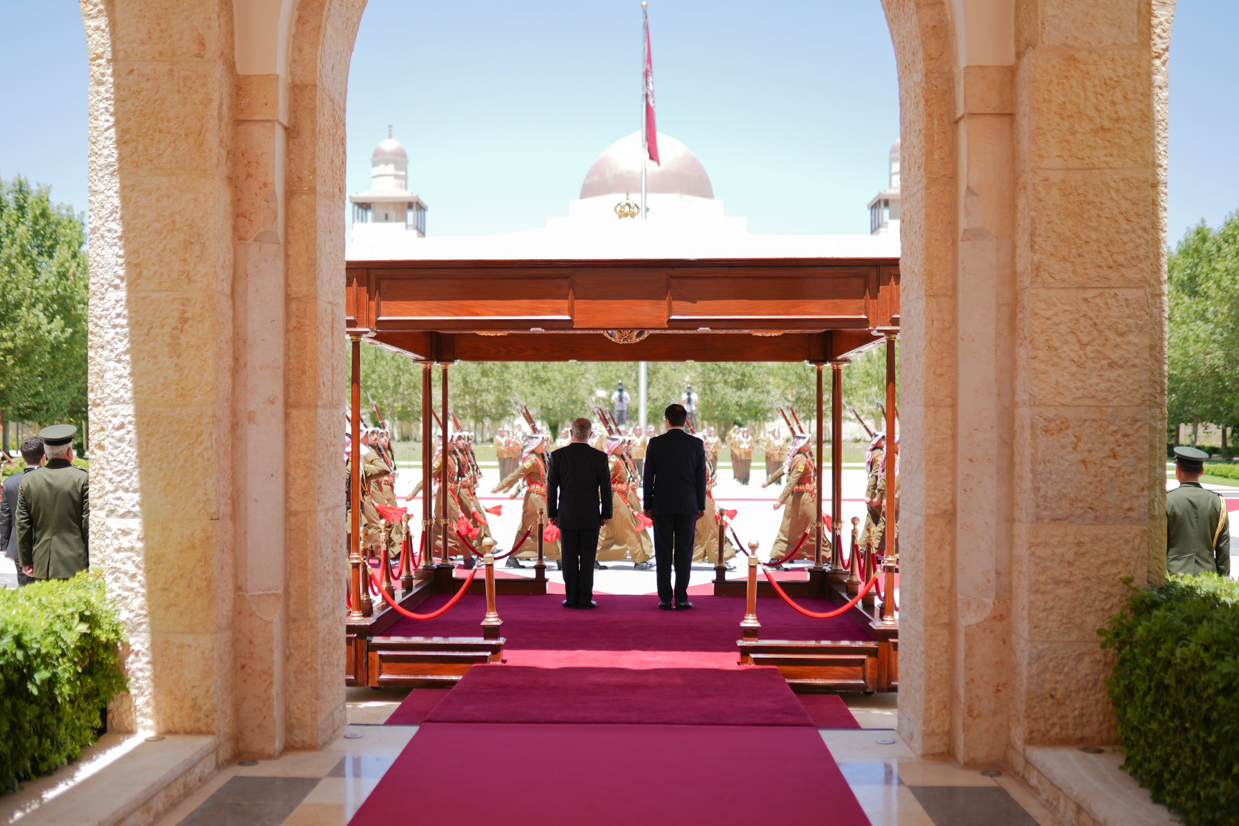 وأعاد جلالته التأكيد على ضرورة نيل الشعب الفلسطيني حقوقه العادلة والمشروعة وقيام دولته الفلسطينية المستقلة على خطوط الرابع من حزيران عام 1967 وعاصمتها القدس الشرقية