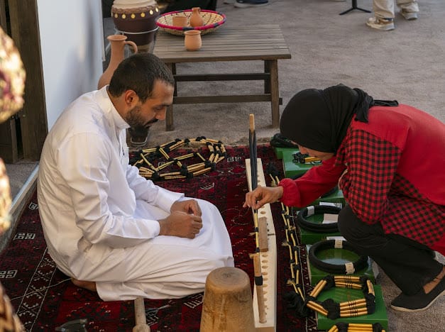 لفت ركن صناعة العُقُل بجناح المملكة العربية السعودية المشارك في مهرجان جرش للثقافة والفنون 2023 في المملكة الأردنية الهاشمية، زوار المهرجان بدورته 37، نسبةً إلى الطريقة اليدوية القديمة التي يصنع بها العُقُل التقليدية، والعِقال "الزري" بالطريقة الخاصة والمطعّم بخيوط الذهب.