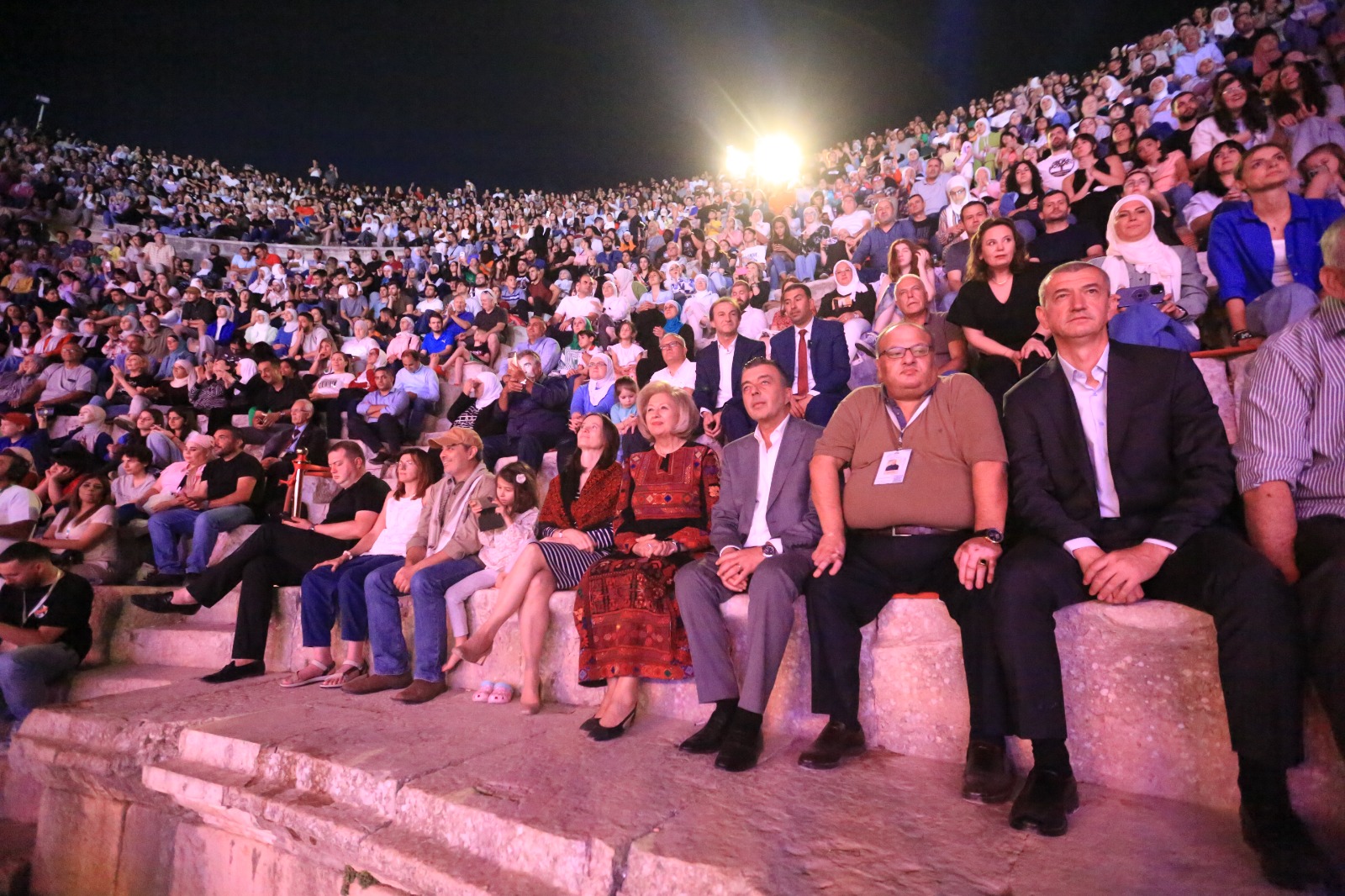 امتلات جنبات المسرح الجنوبي بمحبي الفن الشركسي الأصيل التي اعتادت فرقة النادي الأهلي تقديمه في مهرجان جرش منذ سنين.