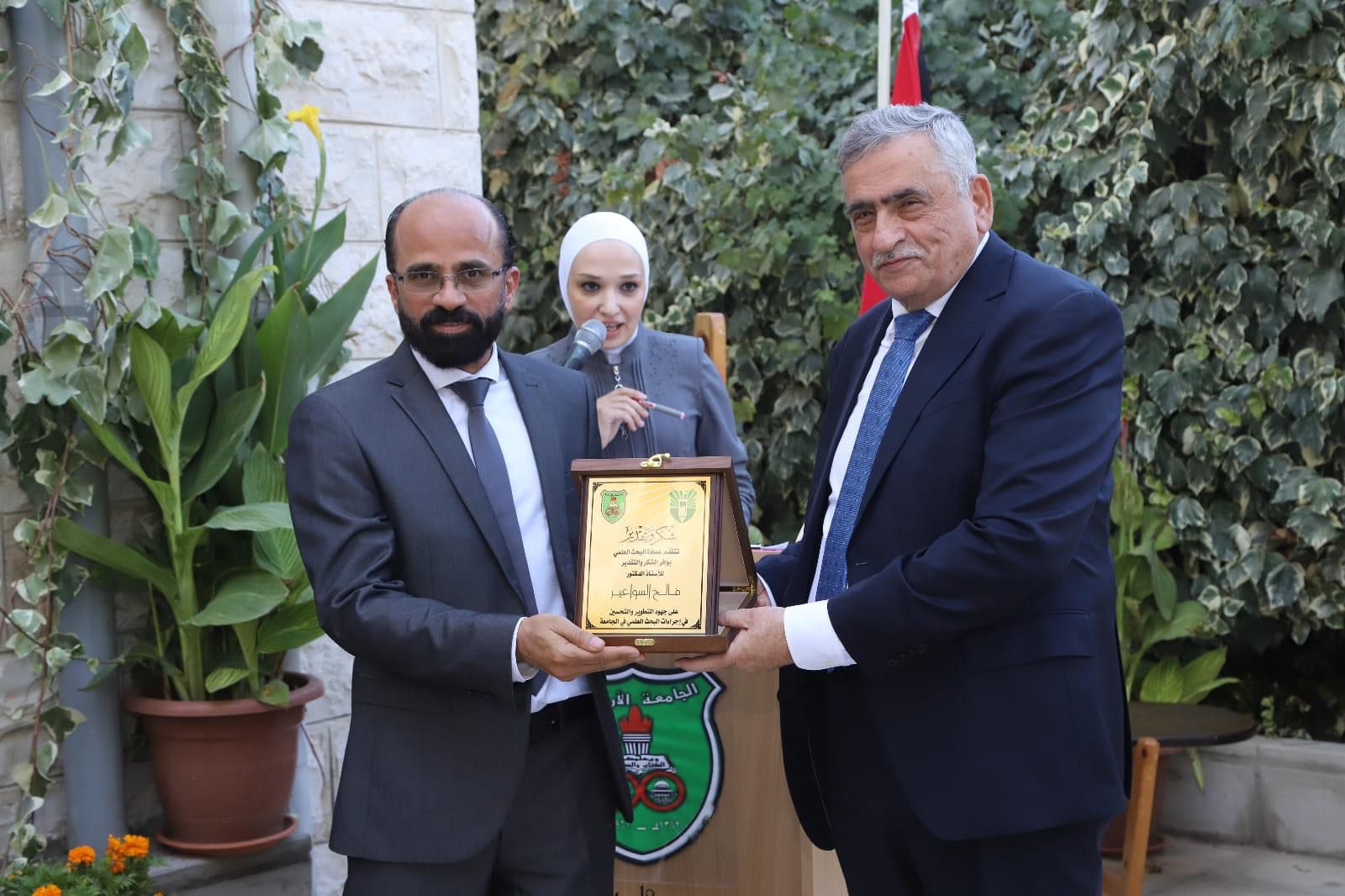 عبيدات يكرم إداريين وطلبة ساهموا في تحسين الخدمات الالكترونية وتحديث البيئة البحثية في عمادة البحث العلمي