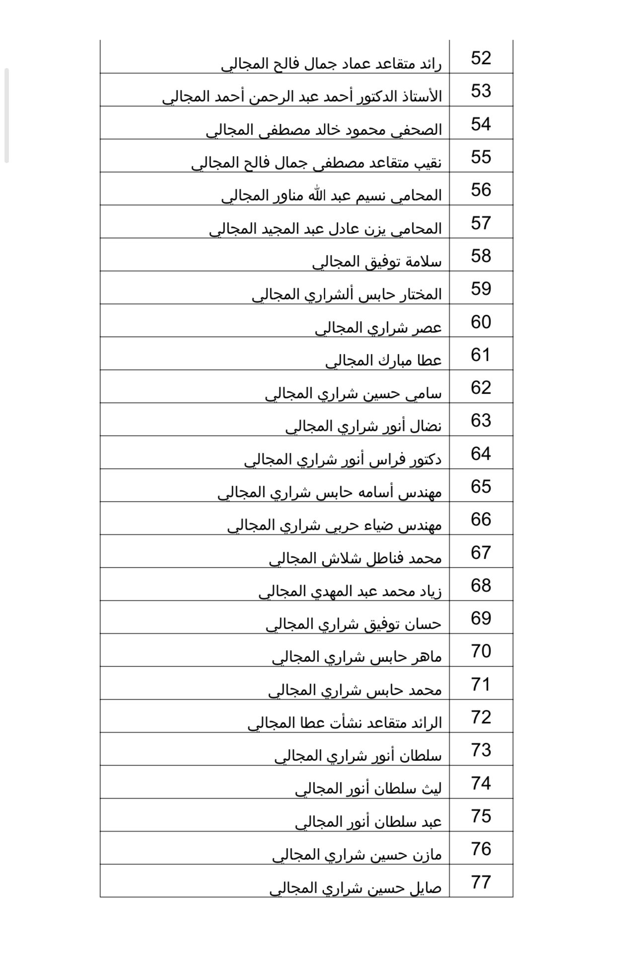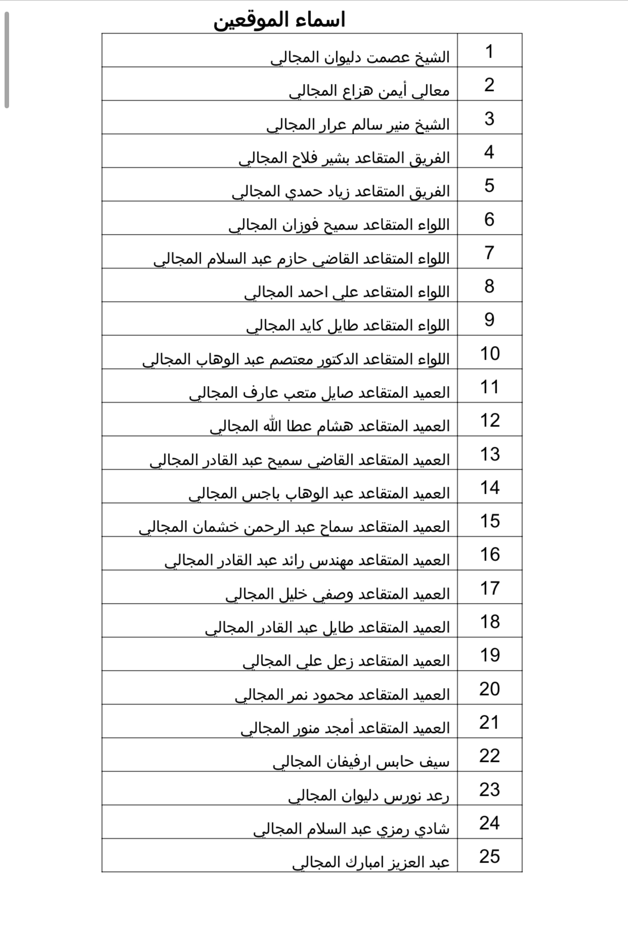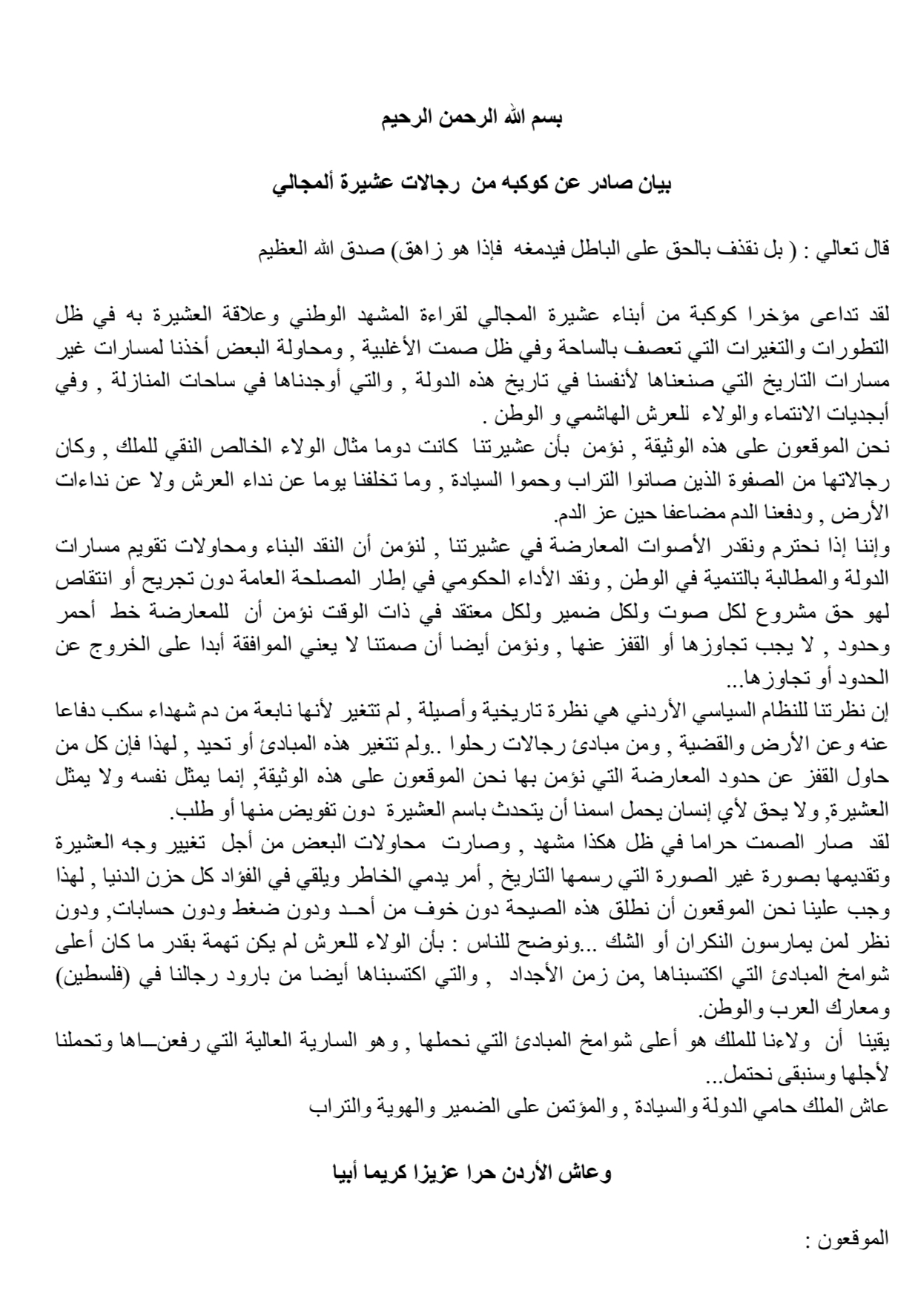 بيان صادر عن 340 شخصية من عشيرة المجالي
