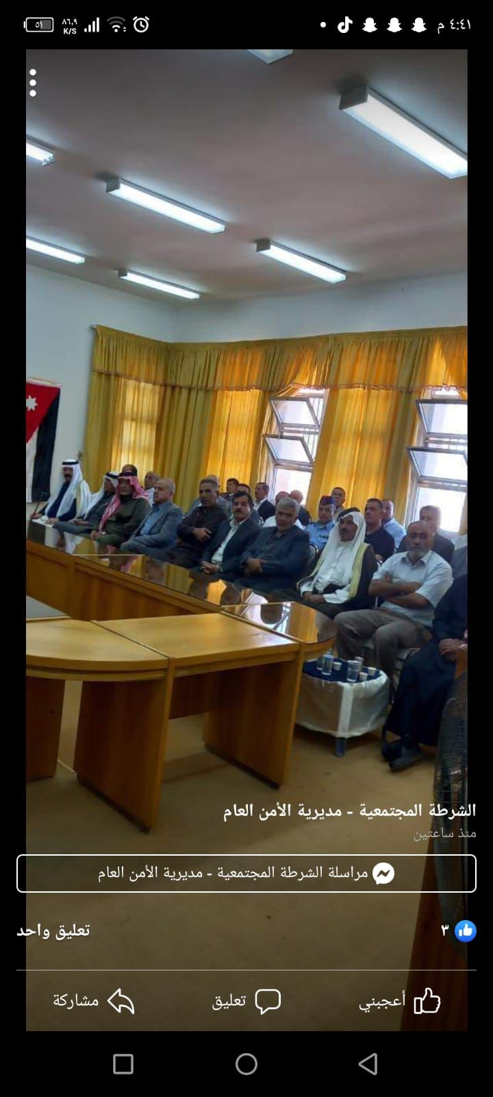 تنفيذا لرؤى وتوجيهات جلاله الملك عبد الله الثاني ابن الحسين المعظم على ضرورة تنفيذ القانون على كل من يقوم باطلاق العيارات الناريه في المناسبات والافراح وبهدف الوصول الى مجتمع خالي من اطلاق العيارات الناريه ومحاربة هذه الظاهره التي تشكل خرقا للقانون وسببا في إزهاق ارواح الابرياء . وقّع شيوخ ووجهاء وممثلين عن كافة الفعاليات الرسميه والشعبيه في محافظة الكرك على وثيقة شرف للتصدي لظاهرة إطلاق العيارات النارية في المناسبات والافراح، بحضور عطوفة محافظ الكرك فراس بيك ابو الغنم وعطوفة مدير الشرطة جمال بيك الجازي والحكام الاداريين ومديري الدوائر الحكومية ورؤساء البلديات ورئيس وأعضاء مجلس المحافظة . وأكد الجميع التزامهم ببنود الوثيقة التي تهدف إلى محاربة ظاهرة إطلاق العيارات النارية ومقاطعة المناسبات والافراح التي يتخللها إطلاق عيارات نارية وعدم التوسط لمطلقيها واتخاذ كافة الإجراءات القانونية الرادعة بحقهم.