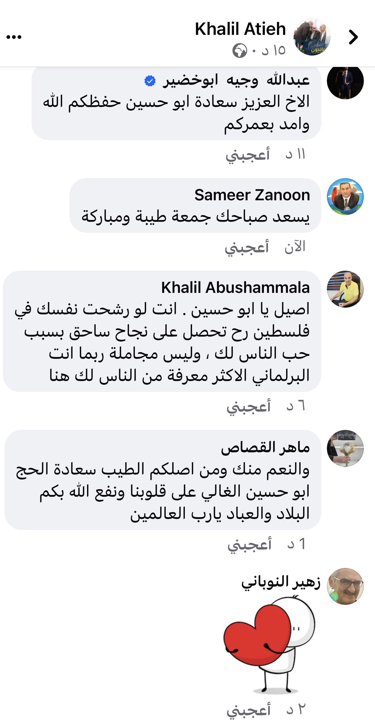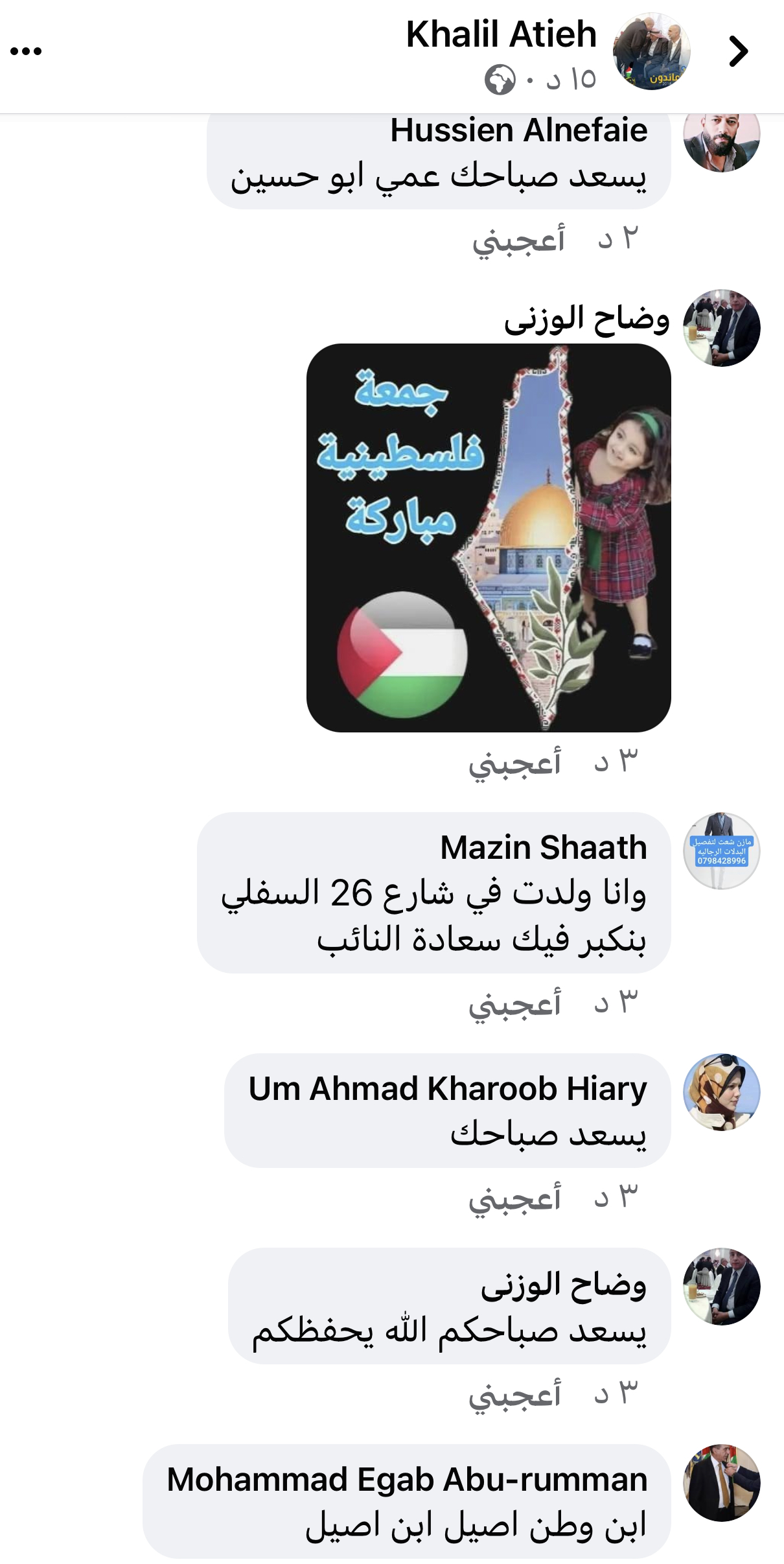 ولاقى ادراجه تفاعلا ايجابيا كبير من متابعيه معتبرين ان تمسكه وعشقه لمسقط رأسه من اعلى مراتب الوطنية وتمسكه بقضية الامة المركزية وتاليا بعض الردود
