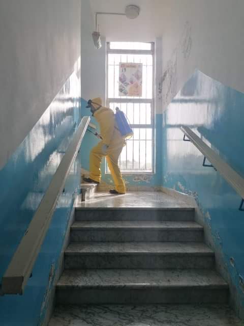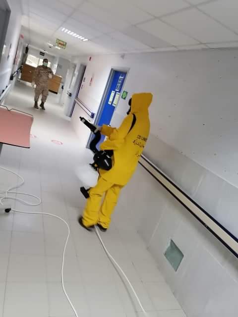استخدم معقم فايروسيد للمناطق الخارجية لمباني المستشفيات، و تم استخدام معقم اكوا ديث لمممرات المستشفيات و نوع T200 للغرف الداخلية ، وتم استخدام طريقة fugging بأجهزة خاصة لتعقيم غرف العزل الخاصة لمرضى الكورونا .