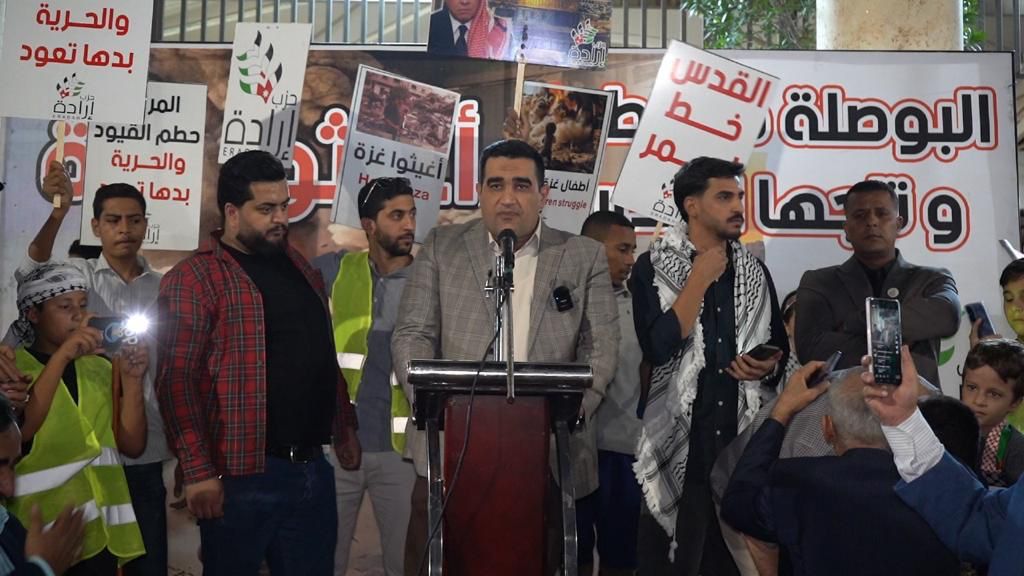وقفة لحزب إرادة فرع العقبة تضامنًا مع الشعب الفلسطيني وتأييدًا لمواقف جلالة الملك… فيديو وصور