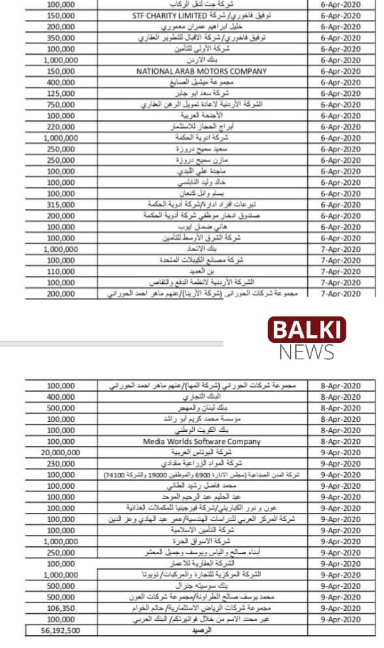 في المرفق، أن هيئات وذوات ومؤسسات وبنوك قدموا للأردن ما هم اهل له، في لحظة حرجة من تاريخه، فهذا زمن التعبير الحقيقي عن الانتماء للوطن، هذا زمن الهمم الكبيرة وزمن المواجهة للتحديات، وزمن التشمير عن السواعد التي تعرف أرضها وقمحها.