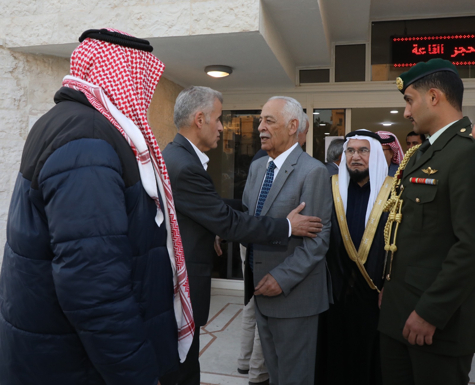 مندوبا عن جلالة الملك عبدالله الثاني ابن الحسين المعظم وسمو ولي العهد المعظم قدم معالي رئيس الديوان الملكي الهاشمي السيد يوسف حسن العيسوي واجب العزاء اليوم الاثنين الموافق 4-12-2023 بالمرحومة عائشة محمد هليل العجارمة (ام ايمن) شقيقة سماحة الشيخ احمد هليل. كما قدم معالية التعازي بوفاة الحاج محمود محمد الدوجان البلاونة( ابو محمد) , والمرحومة عريفة ظاهر الغراغير(ام فتحي ) والدة مقرء الأردن الدكتور يوسف الغراغير ، والمرحوم المهندس أسامة فريد طه(ابو سامر ) . ونقل العيسوي خلال زيارته لذويهم تعازي ومواساة صاحب الجلالة الملك عبدالله الثاني ابن الحسين المعظم وسمو ولي العهد المعظم، سائلا الله العلي القدير ان يتغمدهم بواسع رحمته ويلهم ذويهم الصبر والسلوان.