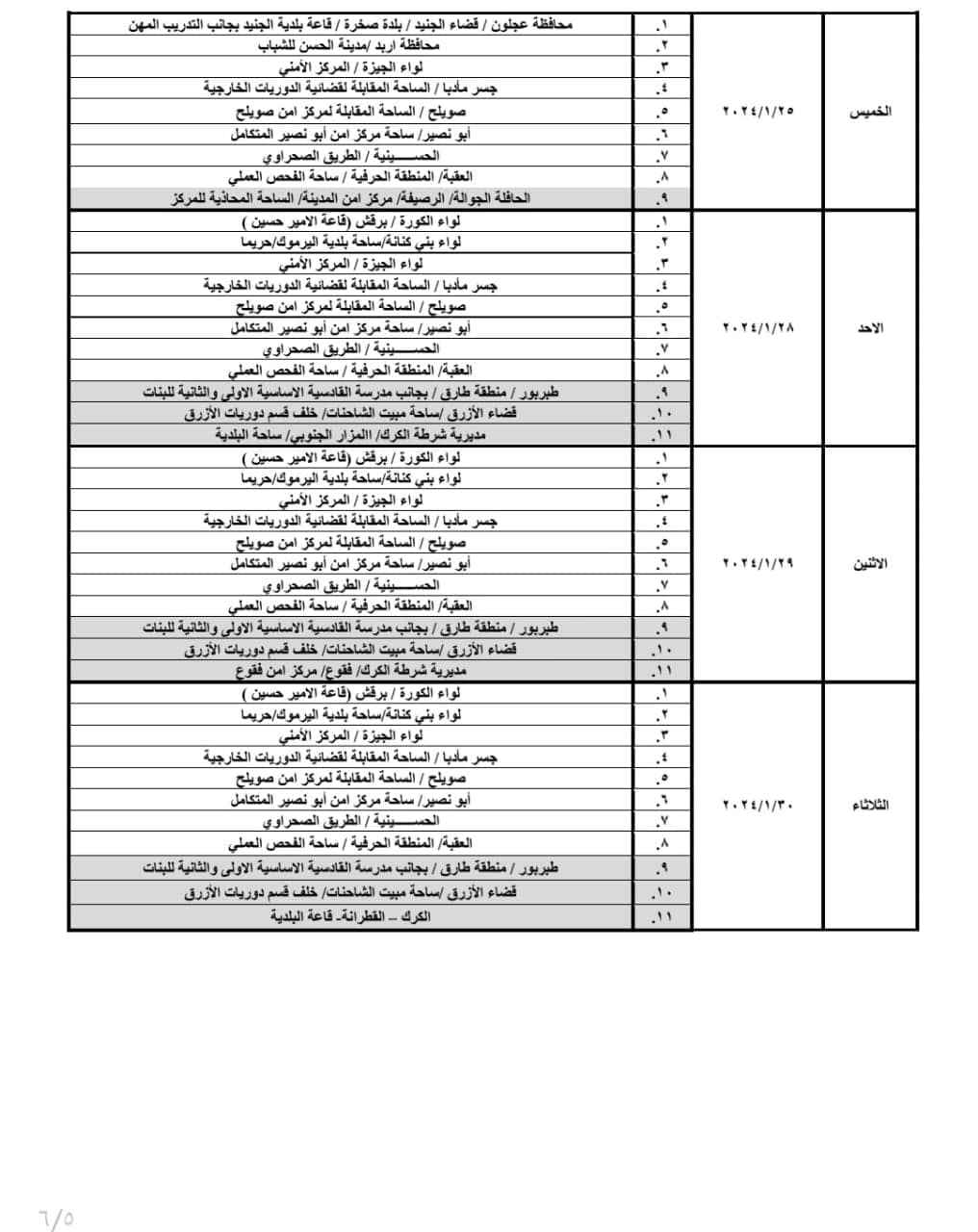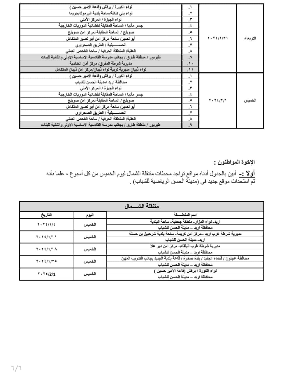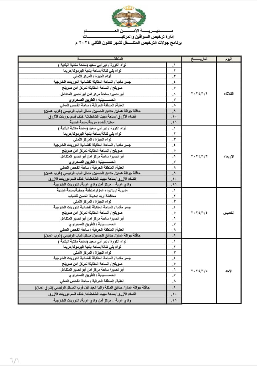 أعلنت إدارة ترخيص السواقين والمركبات مواعيد العمل بجولات الترخيص المتنقل ضمن المبادرة الإبتكارية ( بنوصلك ) خلال شهر كانون الثاني لعام 2024 الجاري في عدد من مناطق المملكة. وقالت الادارة إنه ستكون ساعات الدوام للترخيص المتنقل من يوم الاحد لغاية الاربعاء من الساعة 8 صباحاً وحتى الساعة الثانية ظهراً. ويوم الخميس من الساعة الثامنة صباحاً حتى الواحدة ظهرا . وتاليا مواعيد العمل بجولات الترخيص المتنقل: