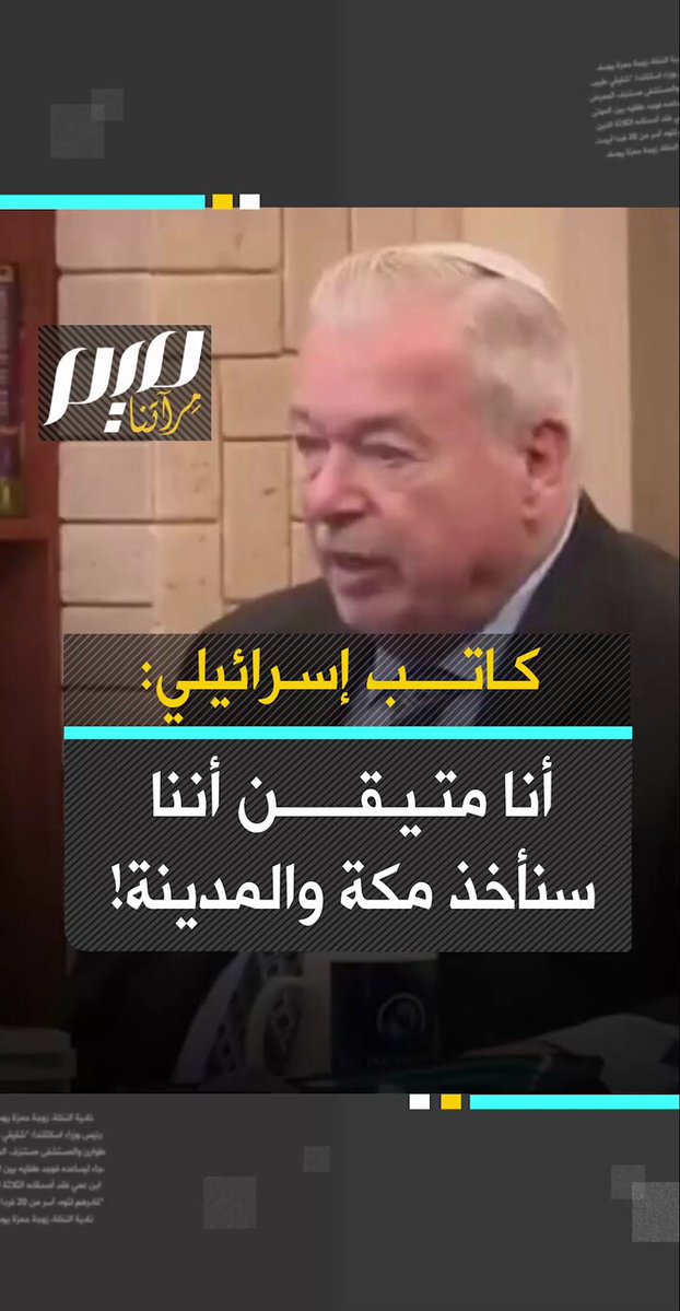 عاجل | الكاتب آفي ليبكن : حدود اسرائيل ستمتد حتى تشمل مكة المكرمة والمدينة المنورة وجبل سيناء".