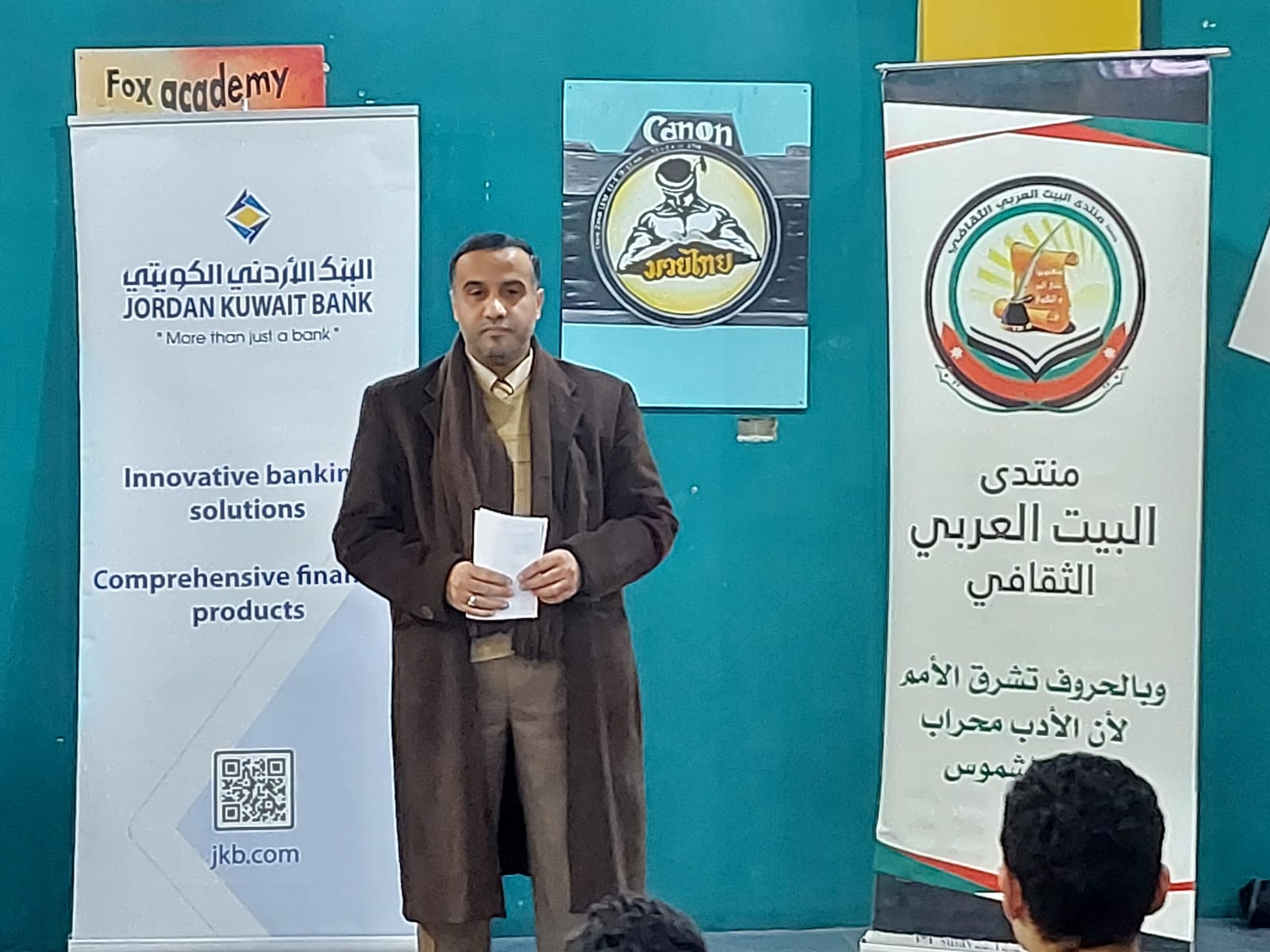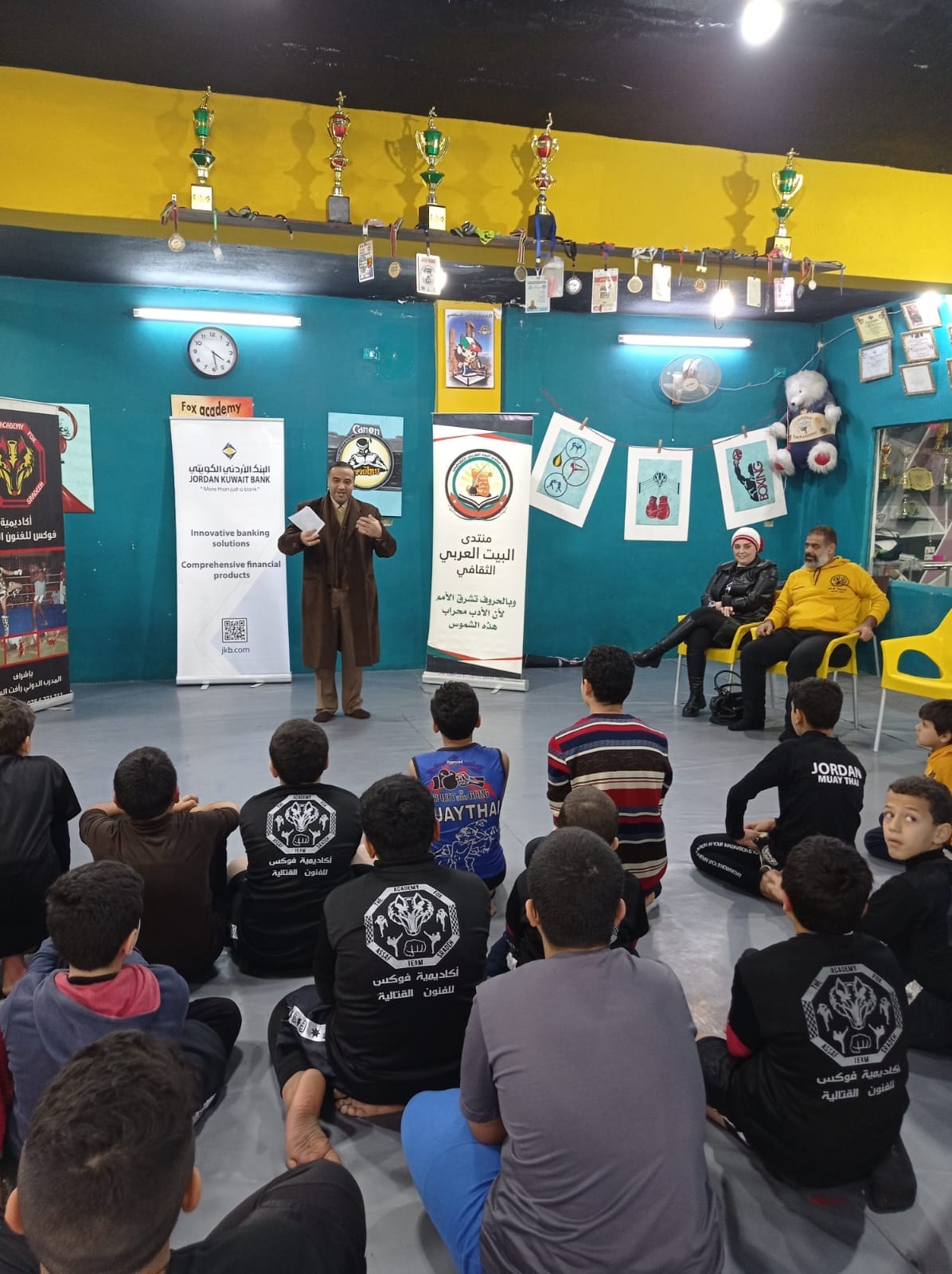رحب مدير أكاديمية فوكس الرياضية الكابتن رائد عساف بالضيوف والمشاركين معبرا عن سعادته بهذه التشاركية الإيجابية مع منتدى البيت العربي الثقافي ممثلا برئيسه المهندس صالح الجعافرة وأمين السر الأديبة ميرنا حتقوة وفريق العمل الرائع