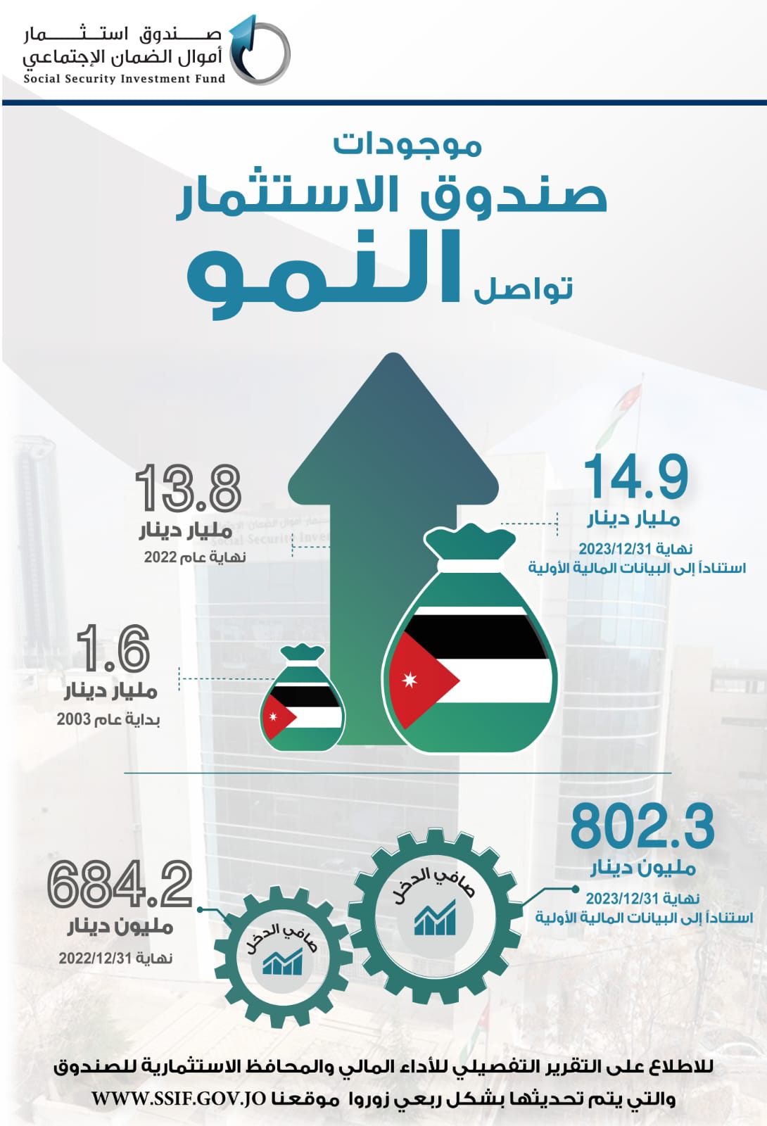 14.9 مليار دينار موجودات صندوق استثمار أموال الضمان الاجتماعي نهاية عام 2023